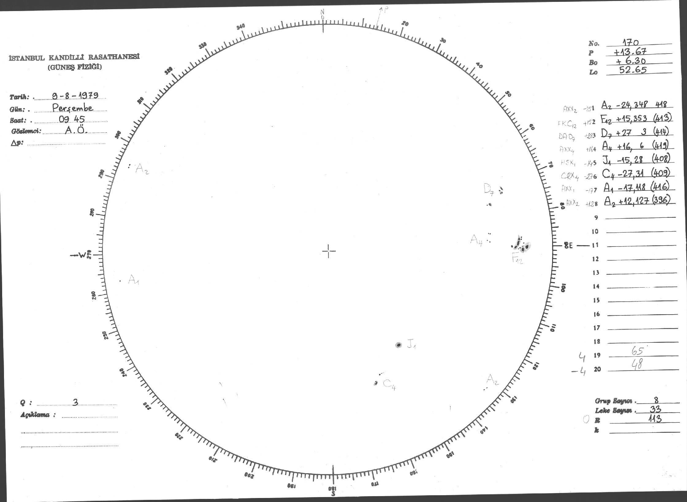 Güneş Lekesi Çizimi - 09.08.1979