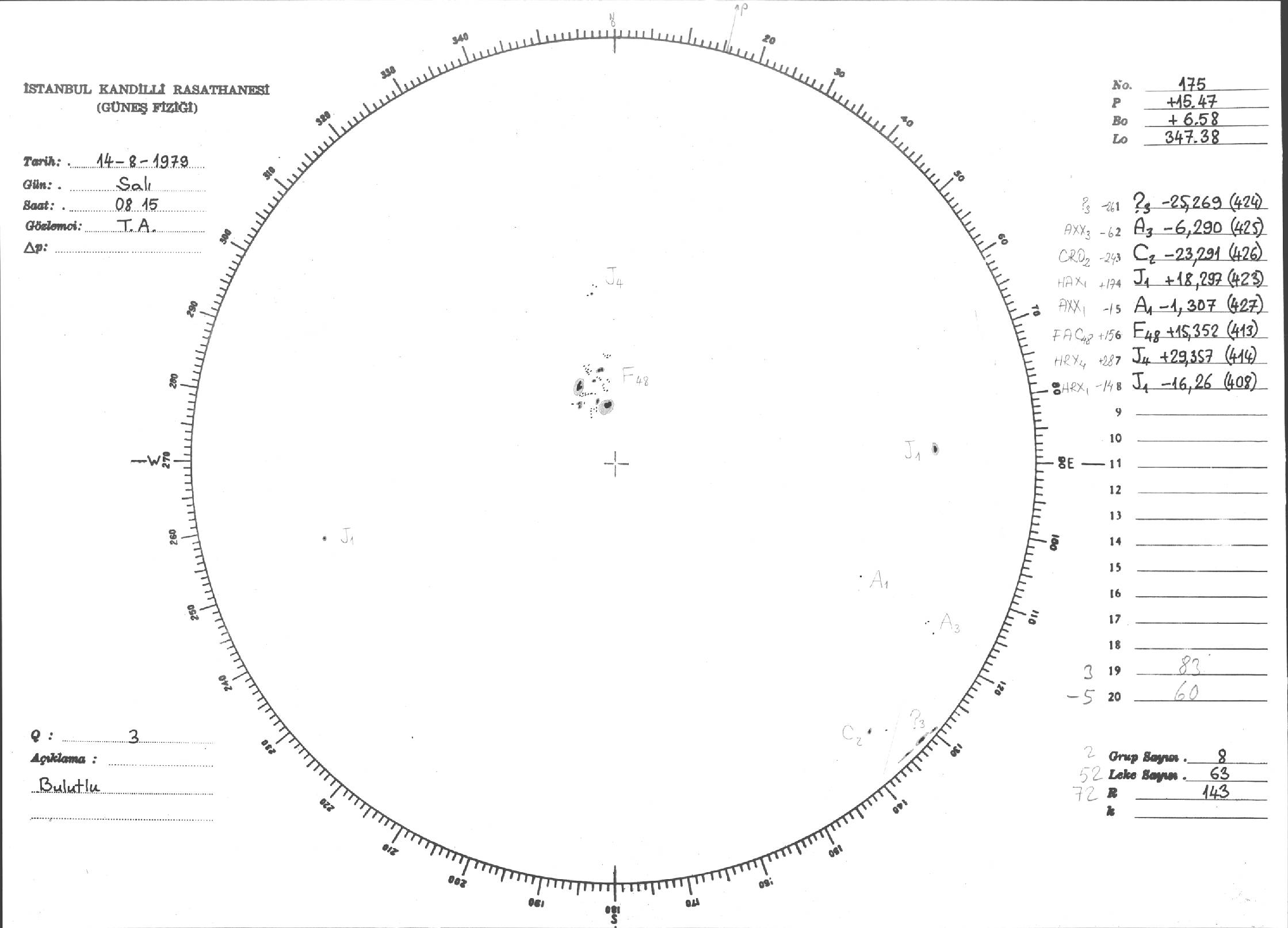 Güneş Lekesi Çizimi - 14.08.1979