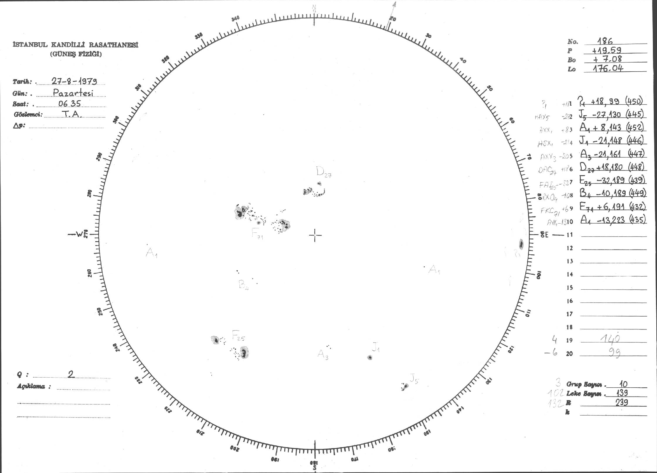 Güneş Lekesi Çizimi - 27.08.1979