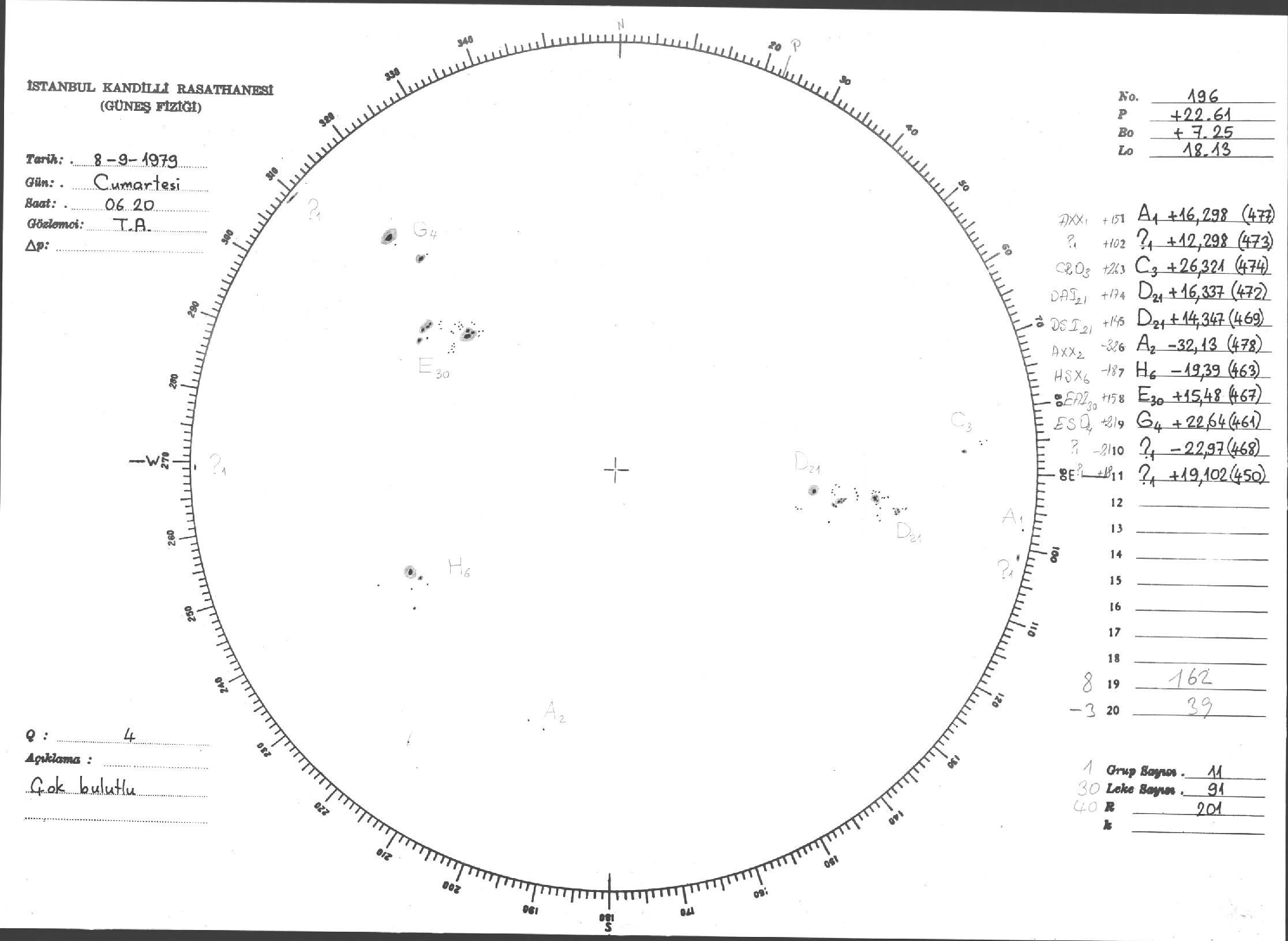 Güneş Lekesi Çizimi - 08.09.1979