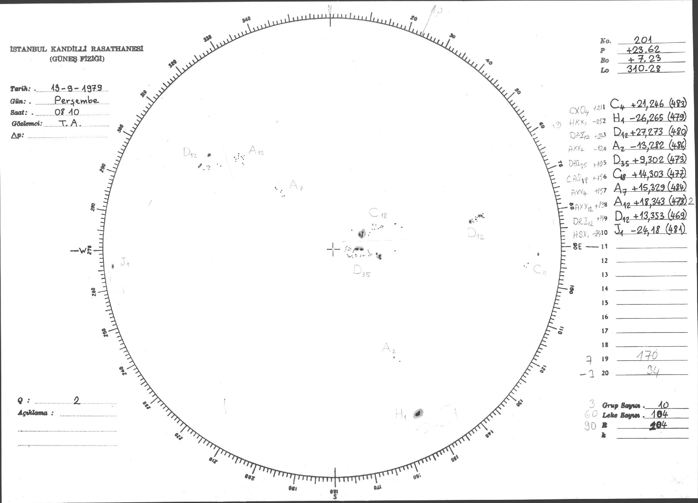 Güneş Lekesi Çizimi - 13.09.1979