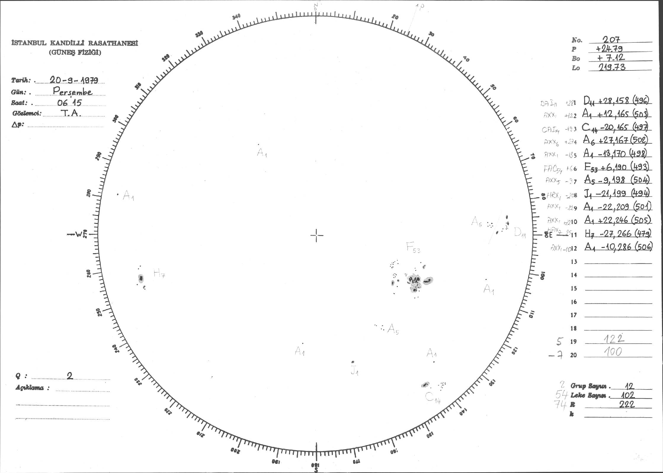 Güneş Lekesi Çizimi - 20.09.1979