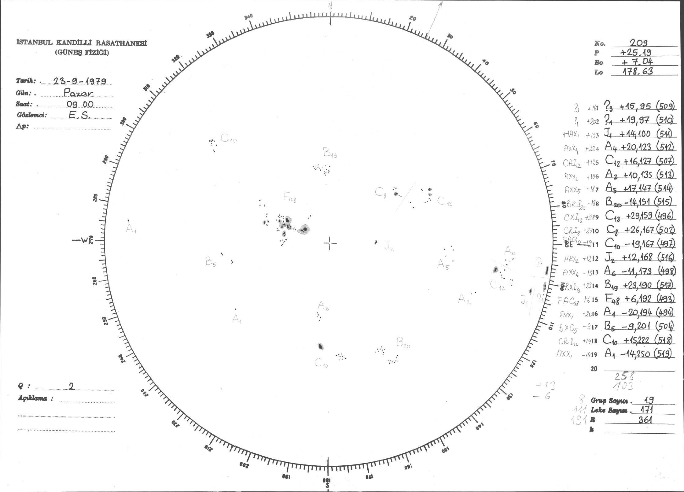 Güneş Lekesi Çizimi - 23.09.1979