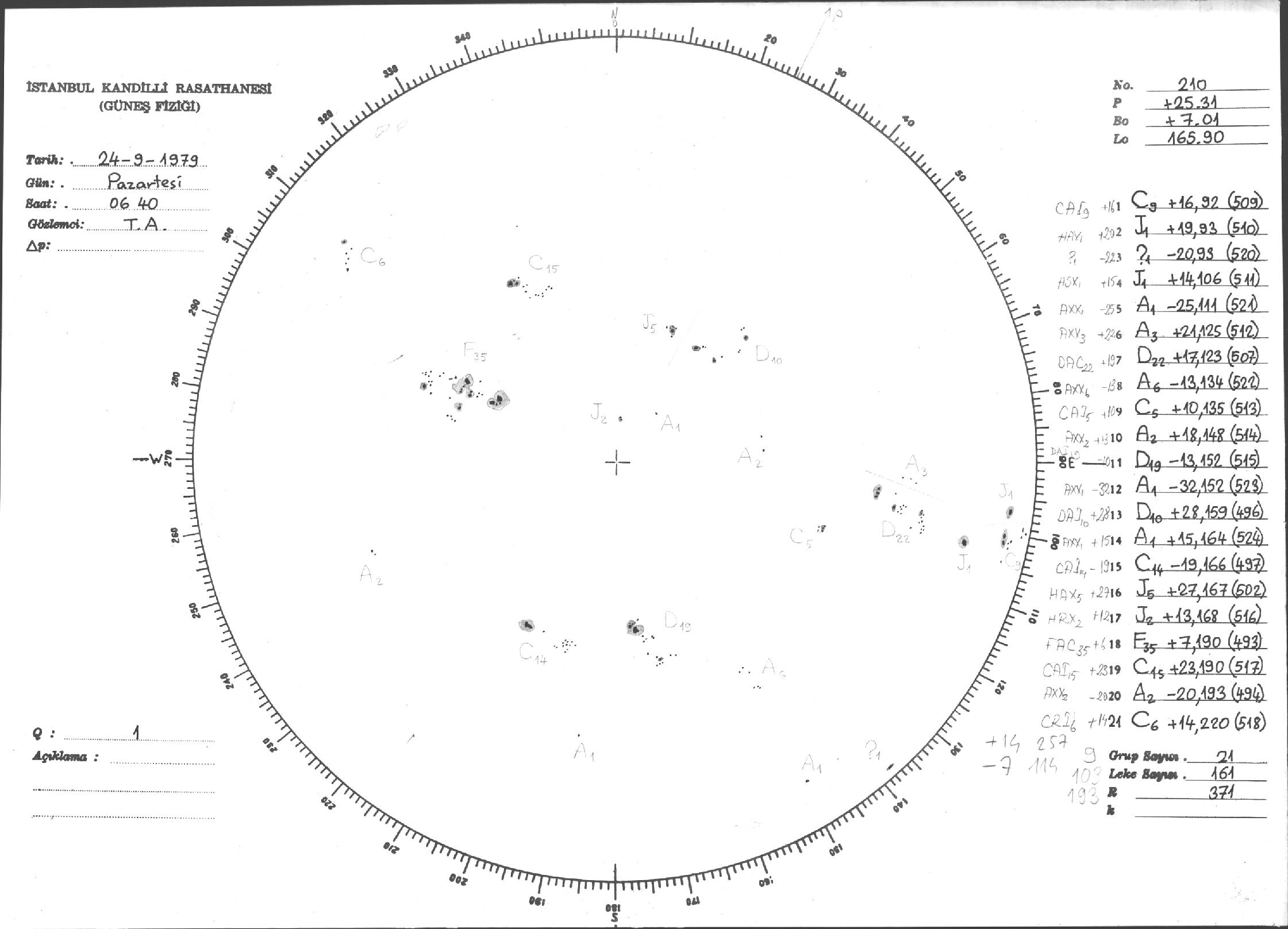 Güneş Lekesi Çizimi - 24.09.1979