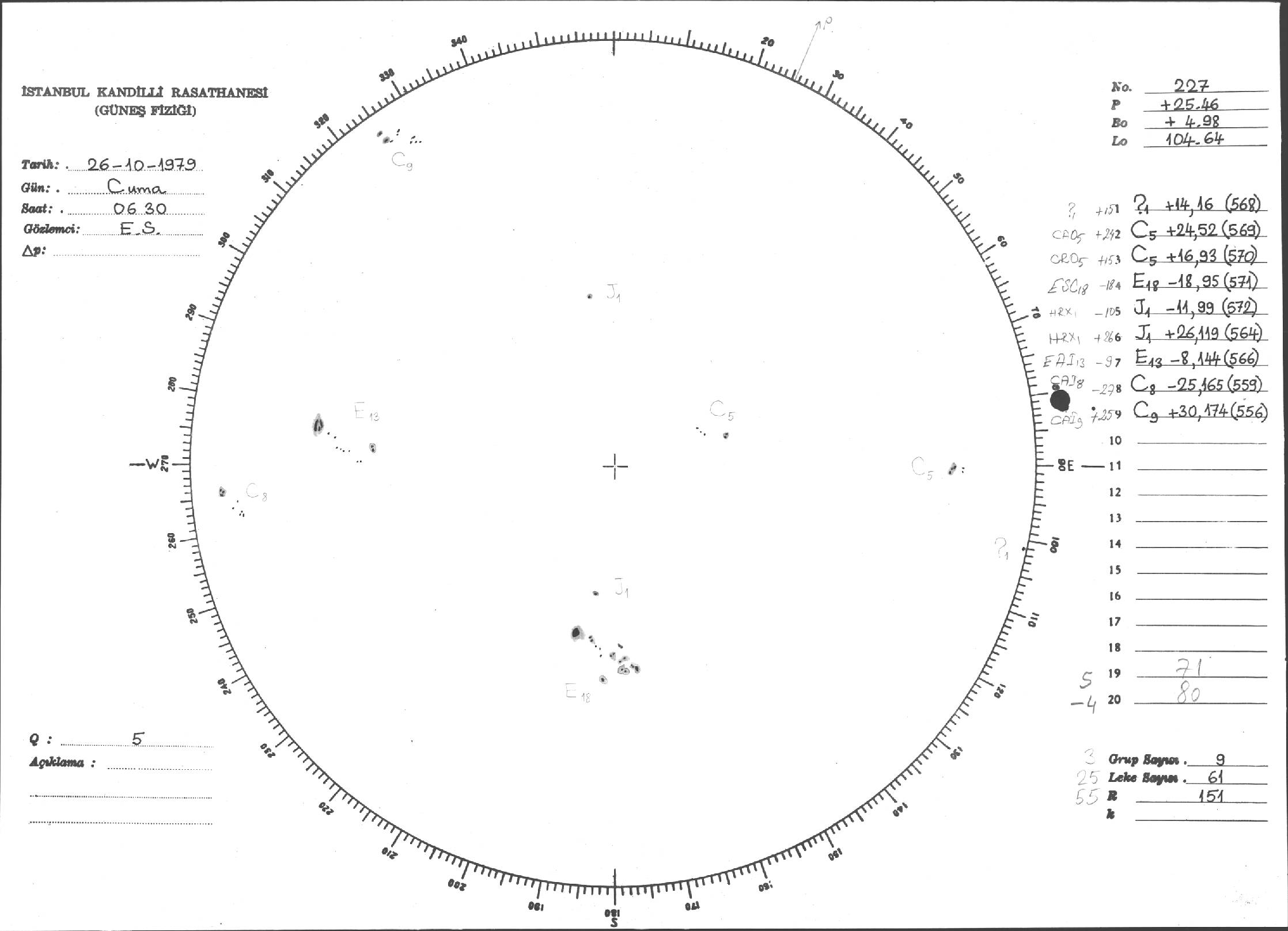 Güneş Lekesi Çizimi - 26.10.1979
