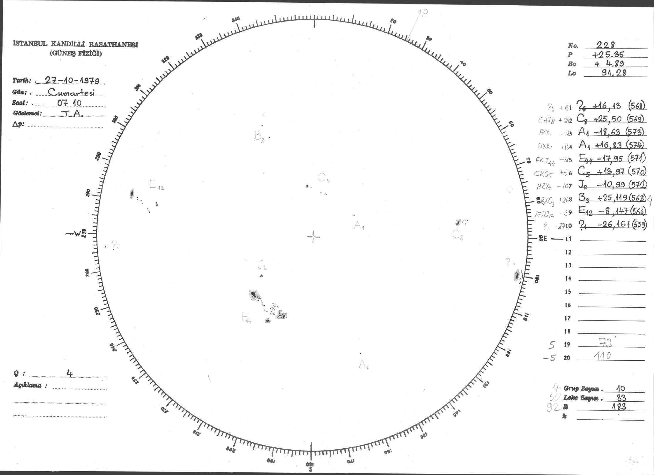 Güneş Lekesi Çizimi - 27.10.1979