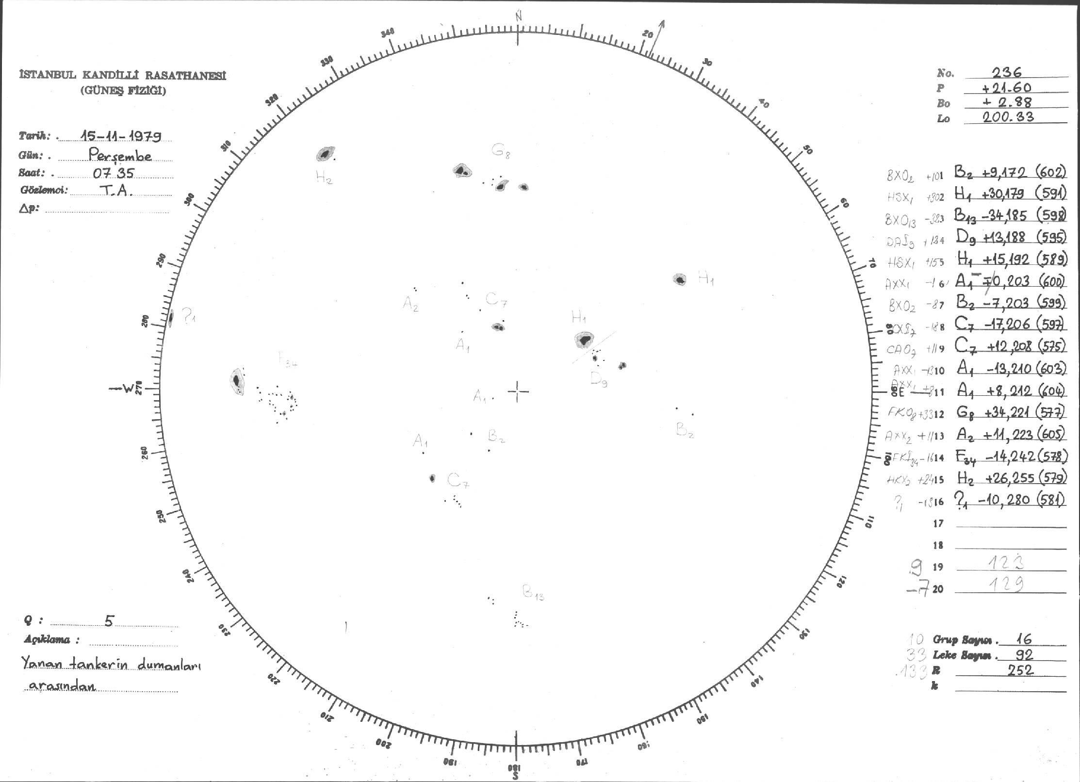 Güneş Lekesi Çizimi - 15.11.1979