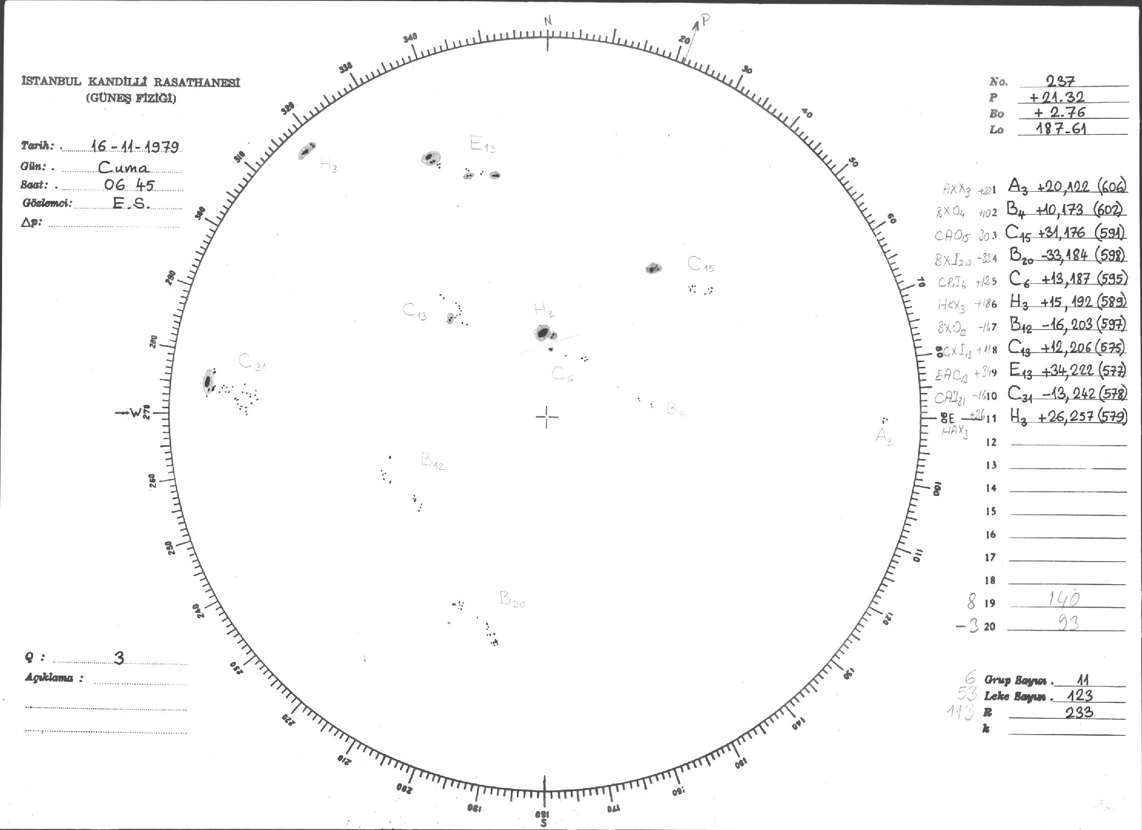 Güneş Lekesi Çizimi - 16.11.1979