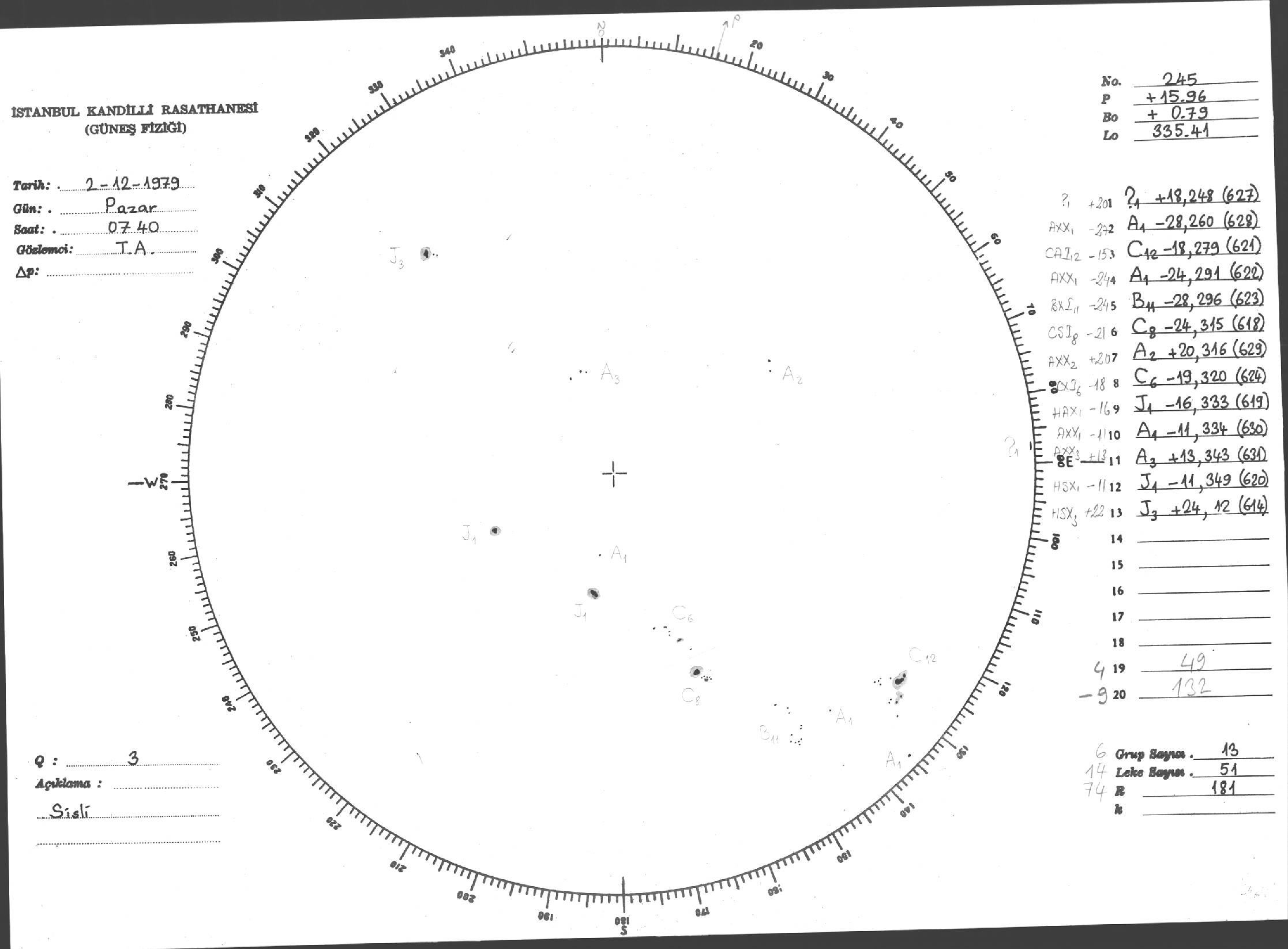 Güneş Lekesi Çizimi - 02.12.1979