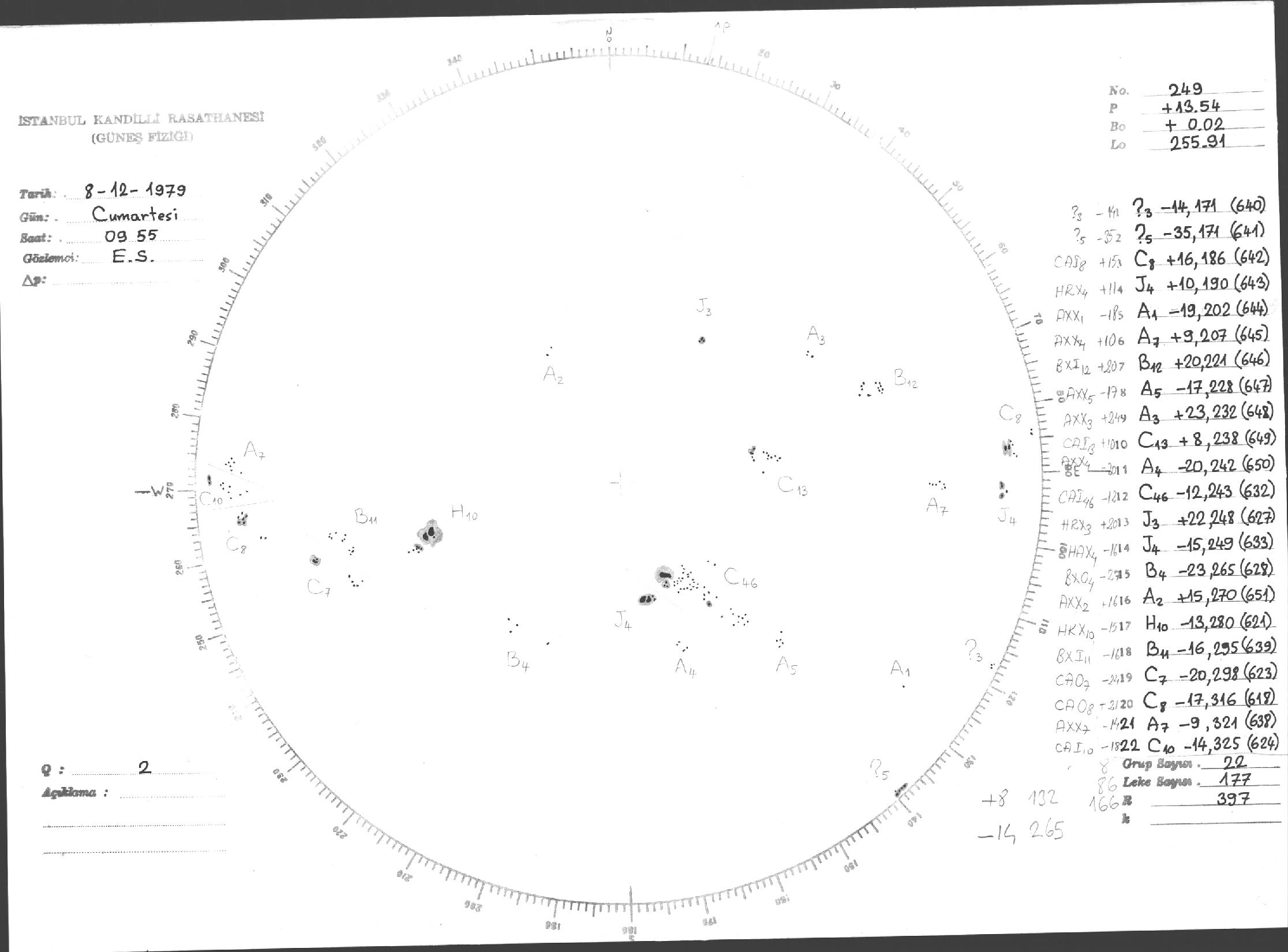 Güneş Lekesi Çizimi - 08.12.1979