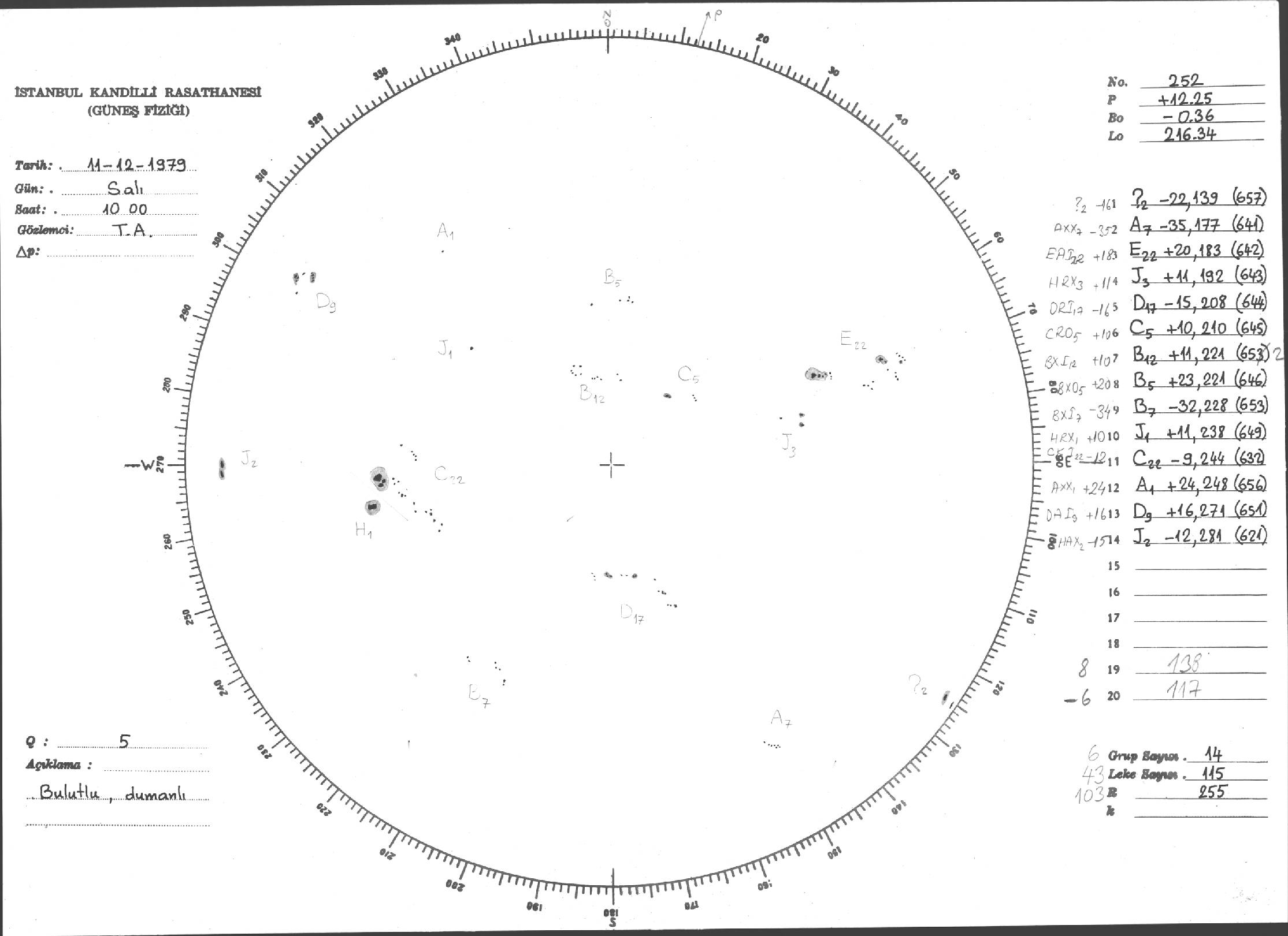 Güneş Lekesi Çizimi - 11.12.1979