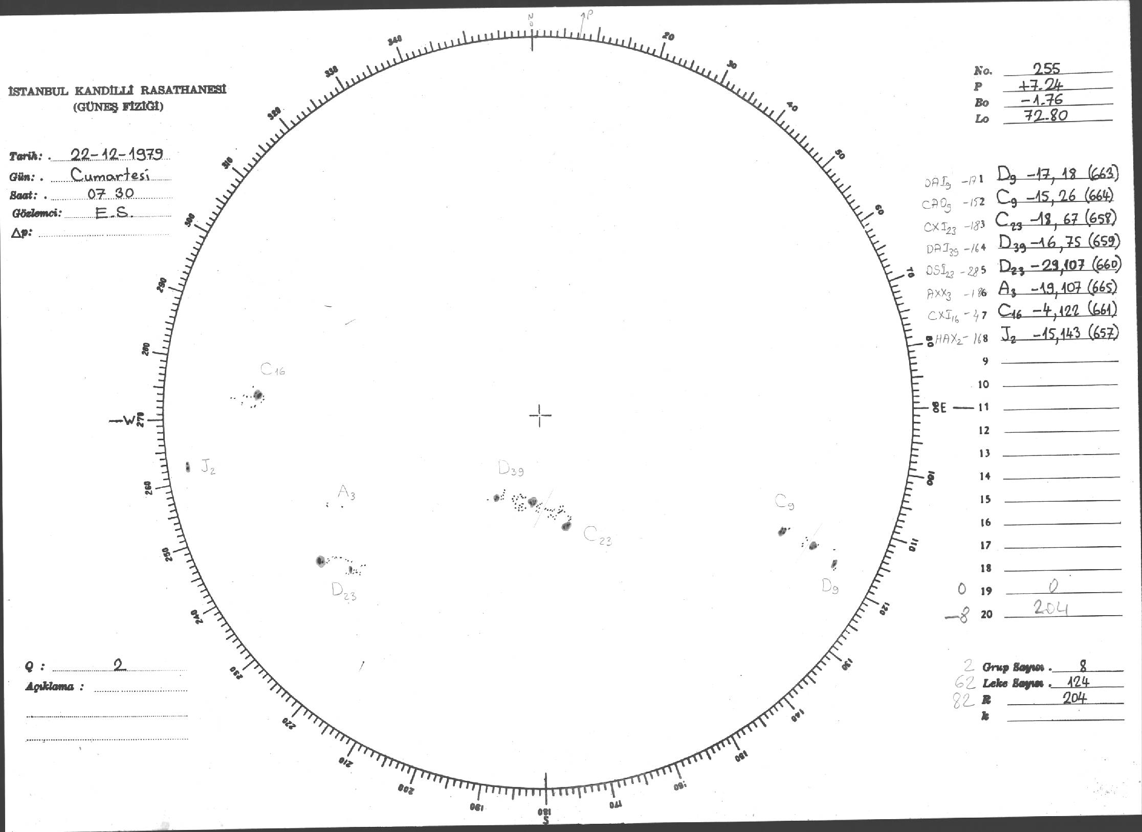 Güneş Lekesi Çizimi - 22.12.1979