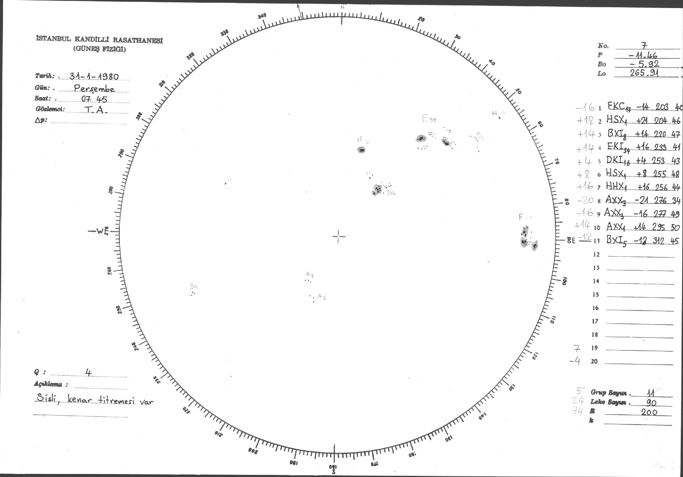 Güneş Lekesi Çizimi - 31.01.1980