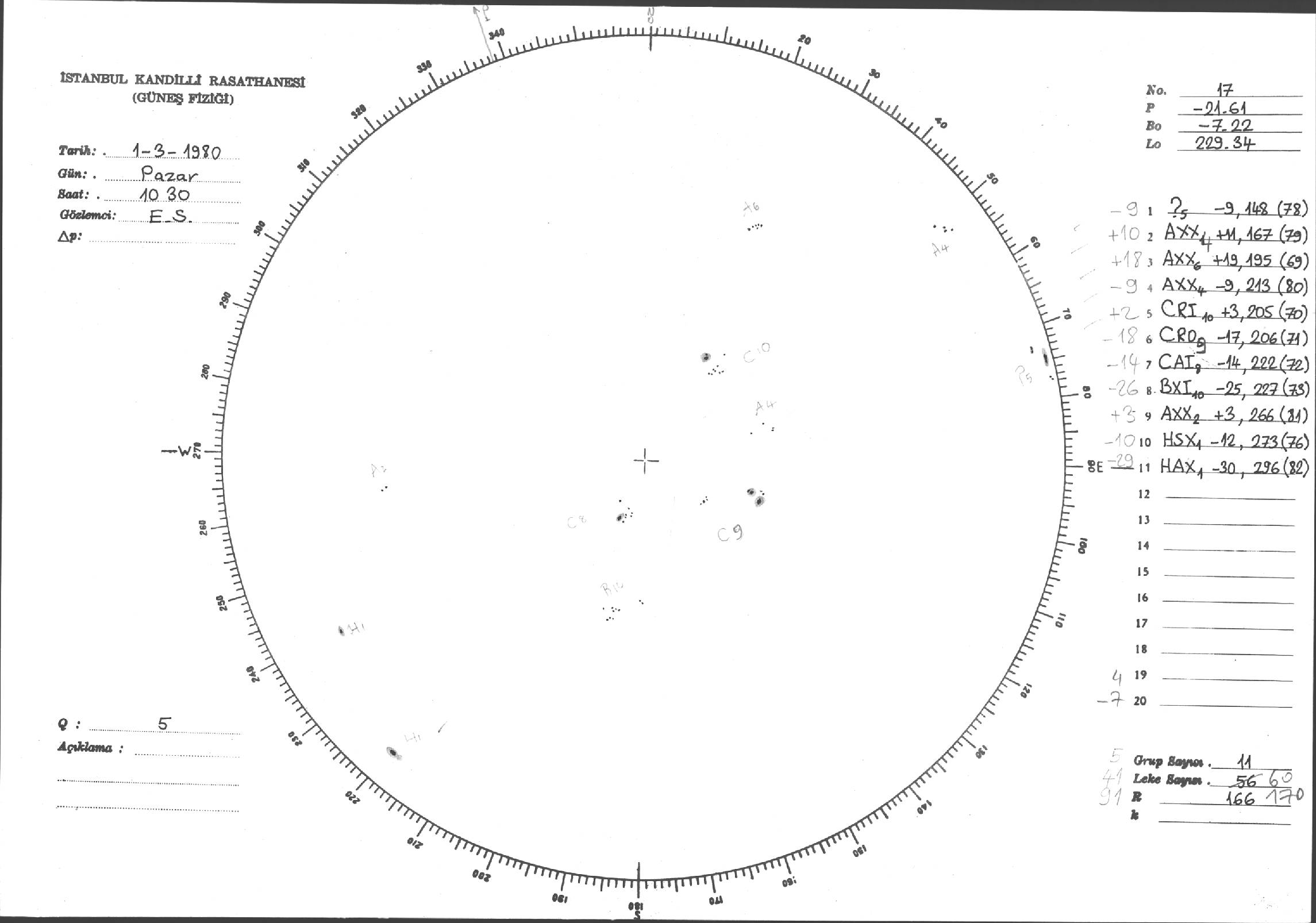 Güneş Lekesi Çizimi - 01.03.1980