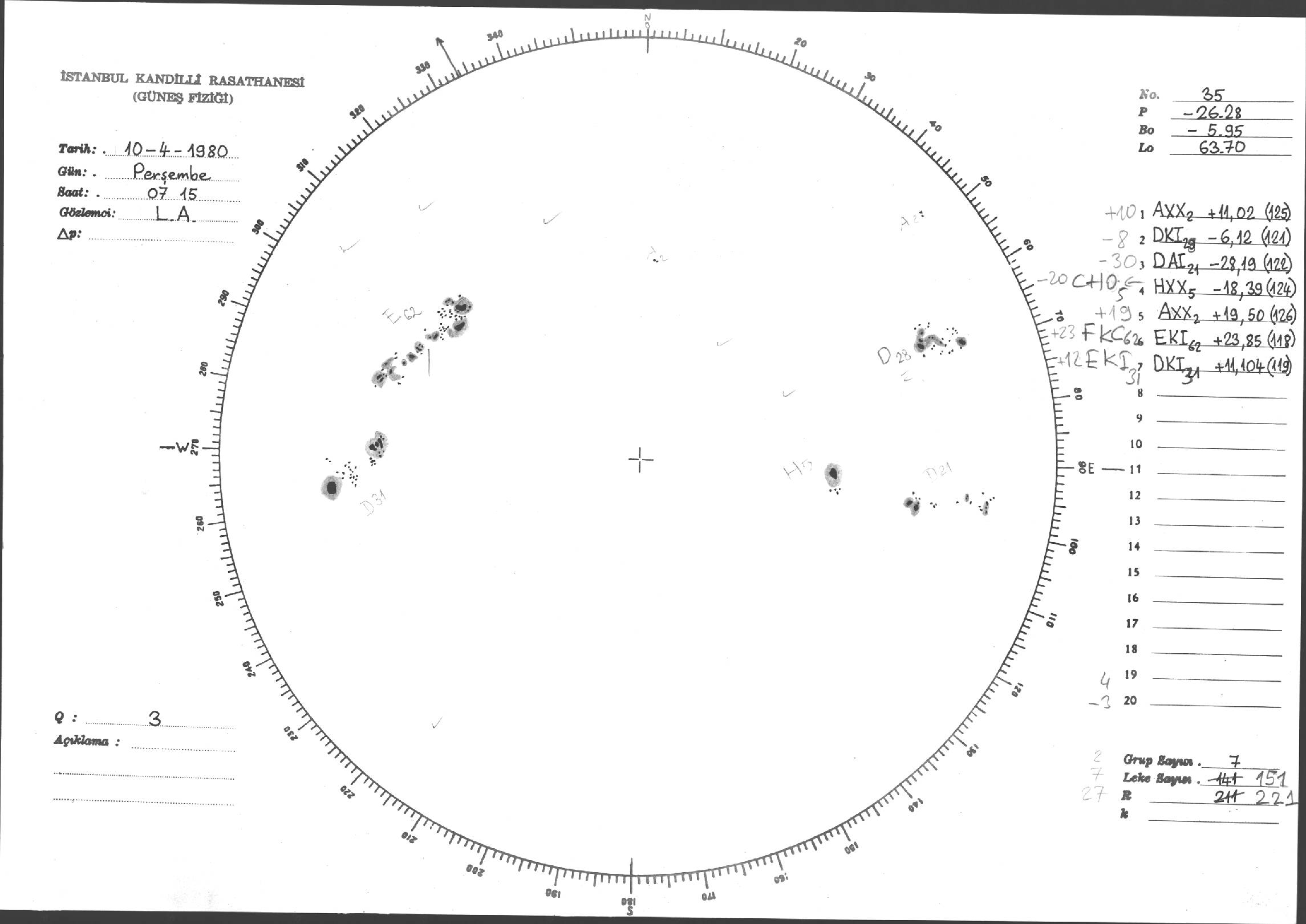 Güneş Lekesi Çizimi - 10.04.1980