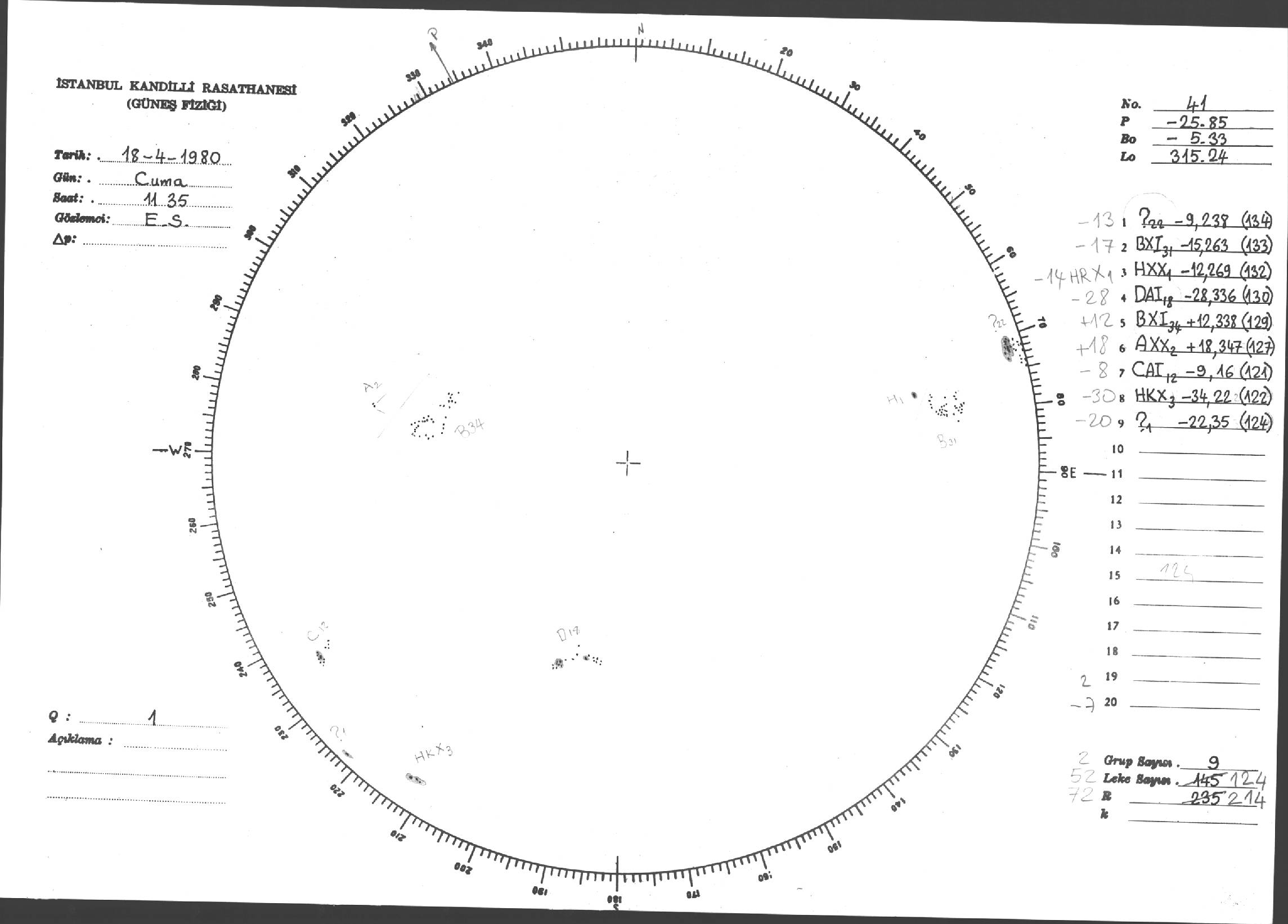 Güneş Lekesi Çizimi - 18.04.1980