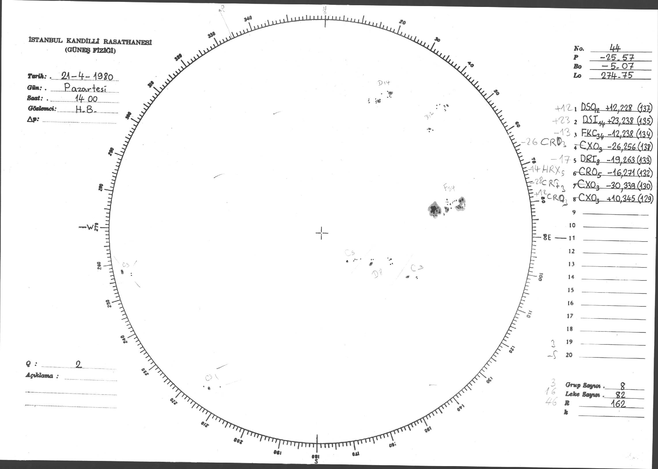 Güneş Lekesi Çizimi - 21.04.1980