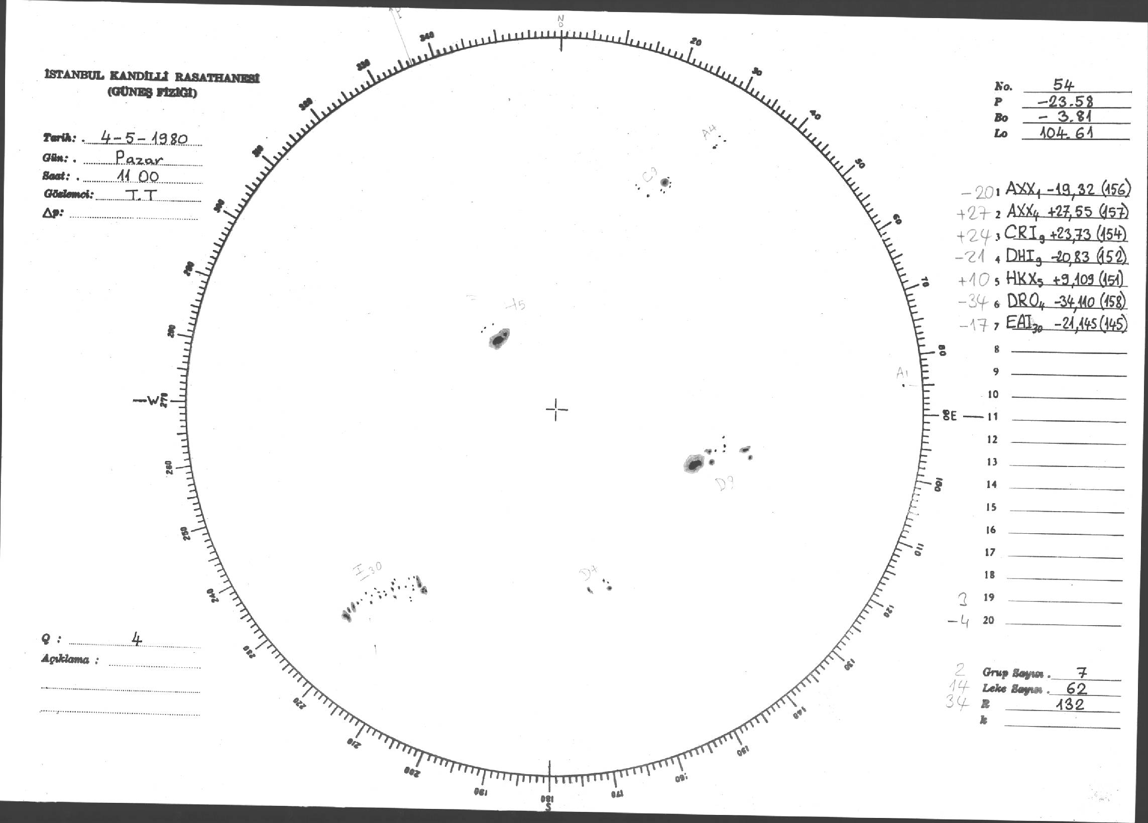 Güneş Lekesi Çizimi - 04.05.1980