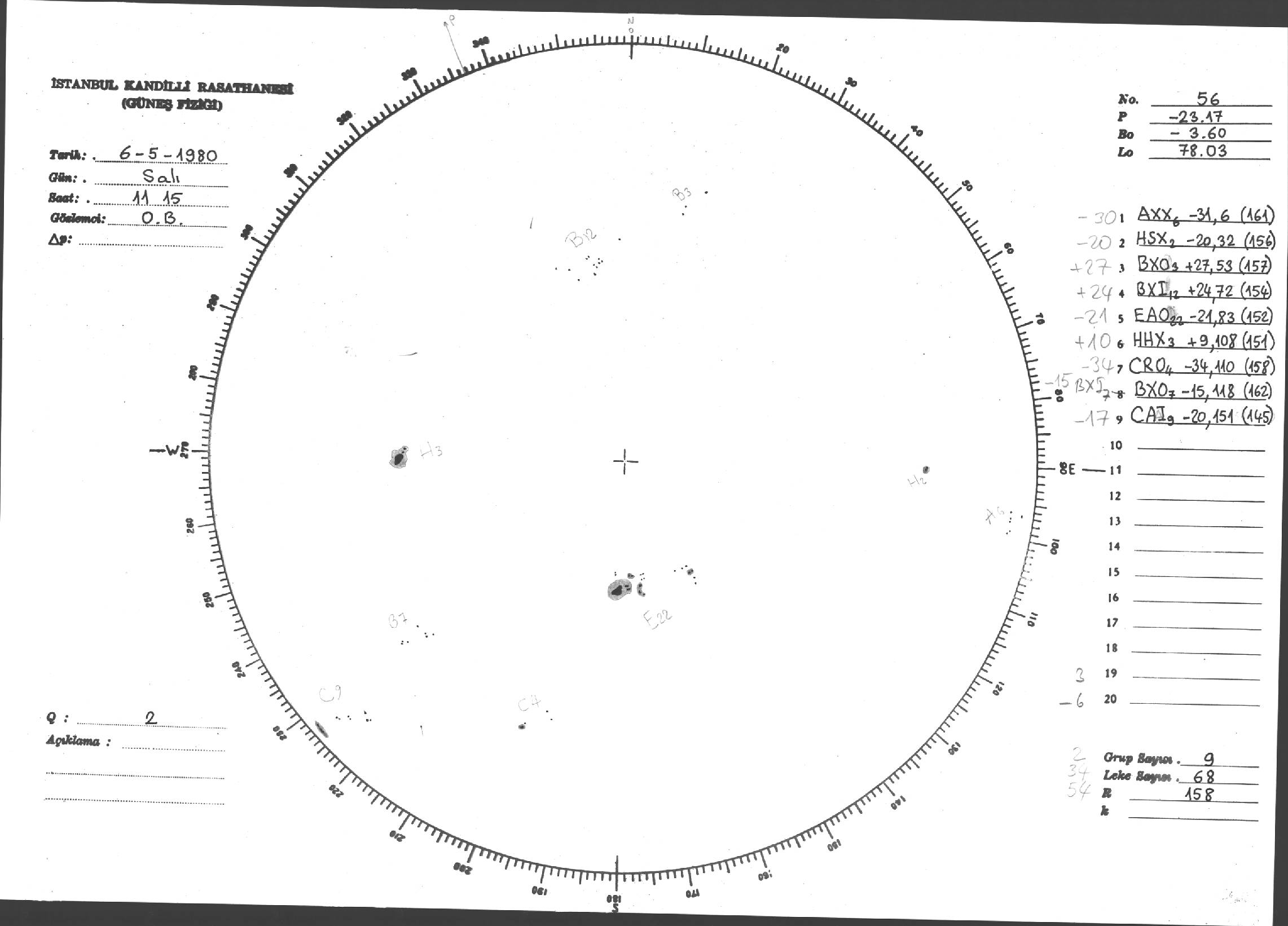 Güneş Lekesi Çizimi - 06.05.1980