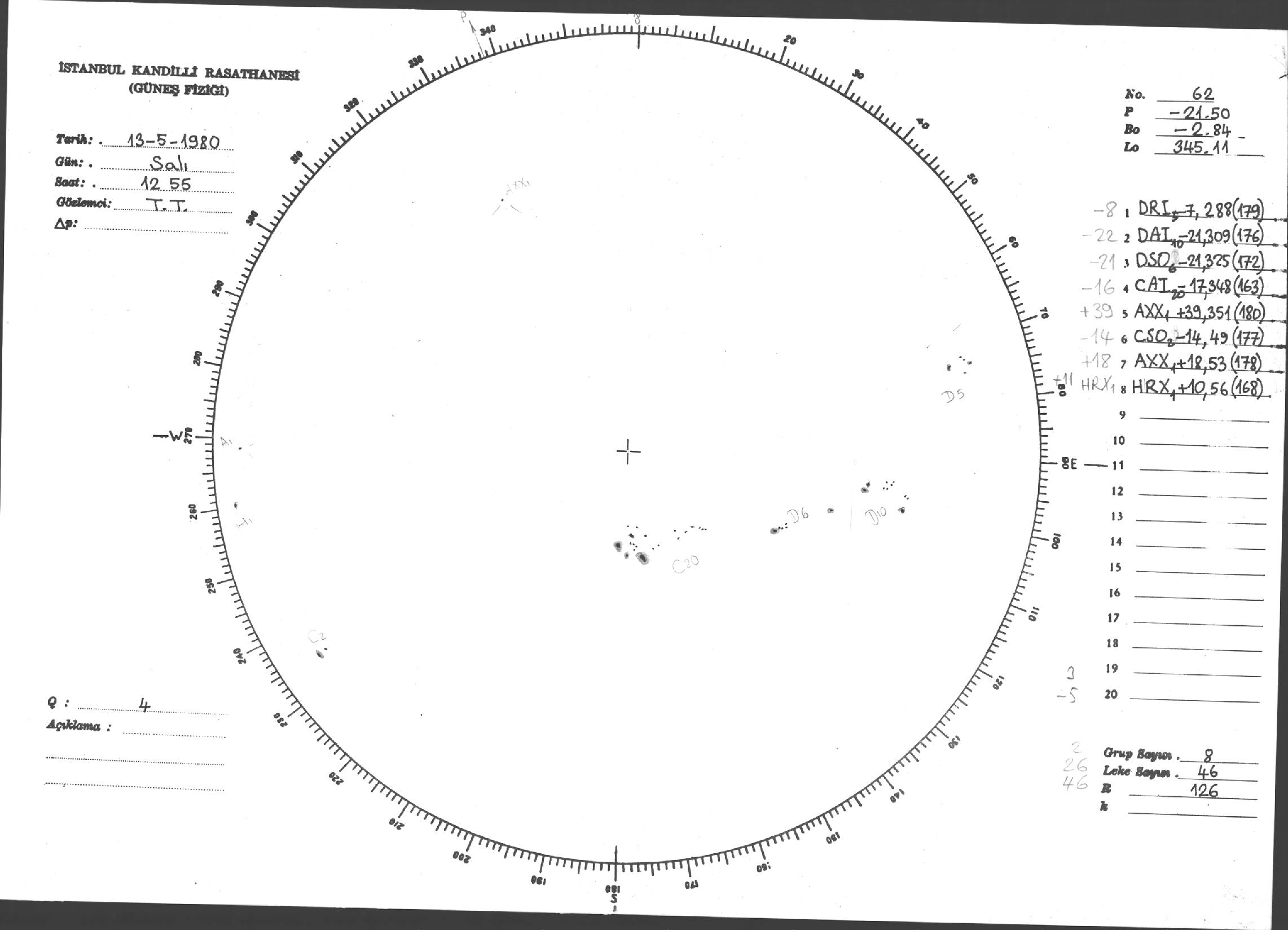 Güneş Lekesi Çizimi - 13.05.1980