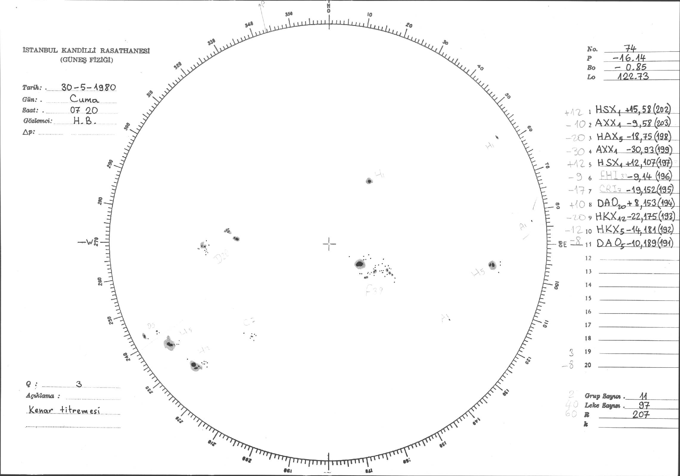 Güneş Lekesi Çizimi - 30.05.1980