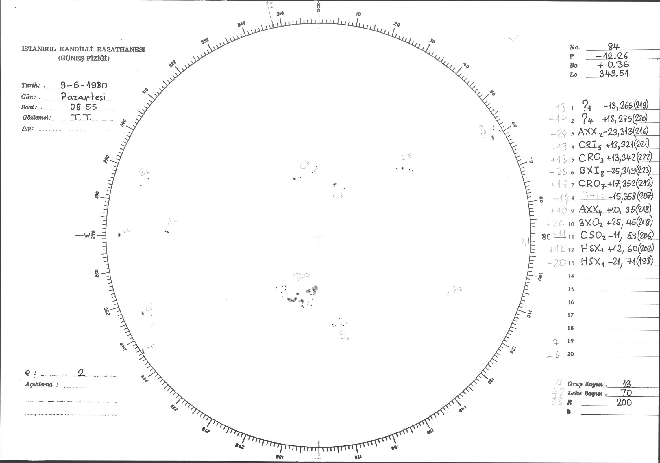 Güneş Lekesi Çizimi - 09.06.1980