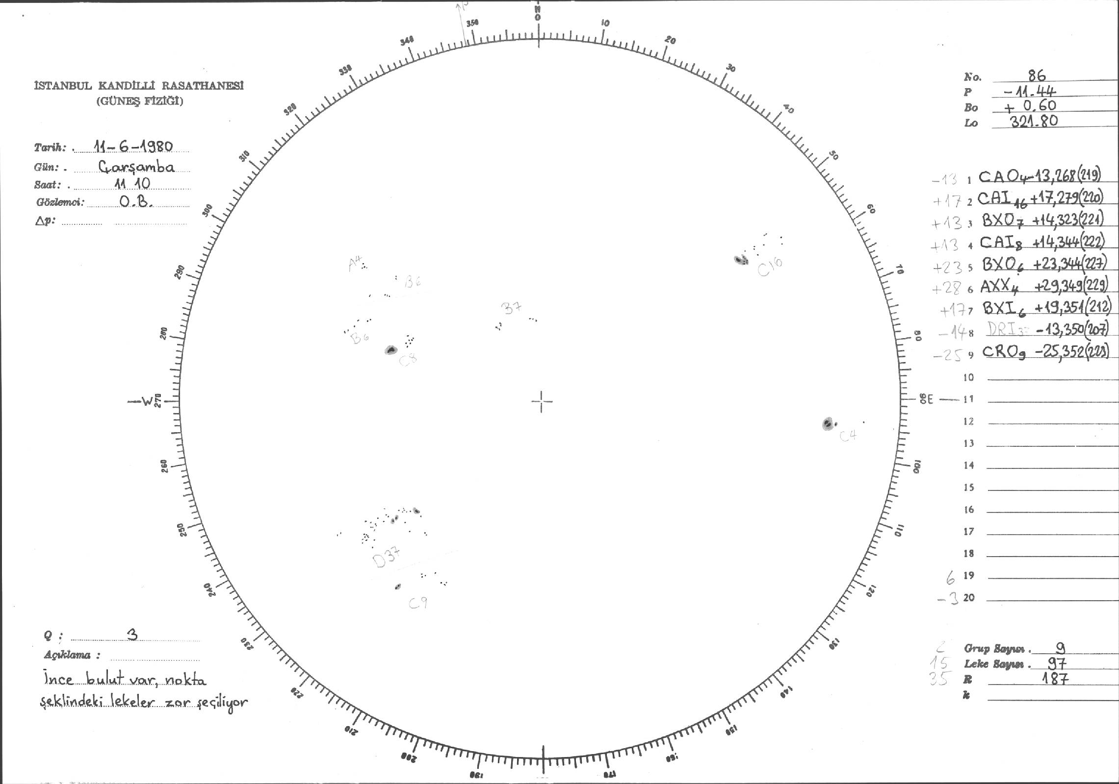 Güneş Lekesi Çizimi - 11.06.1980