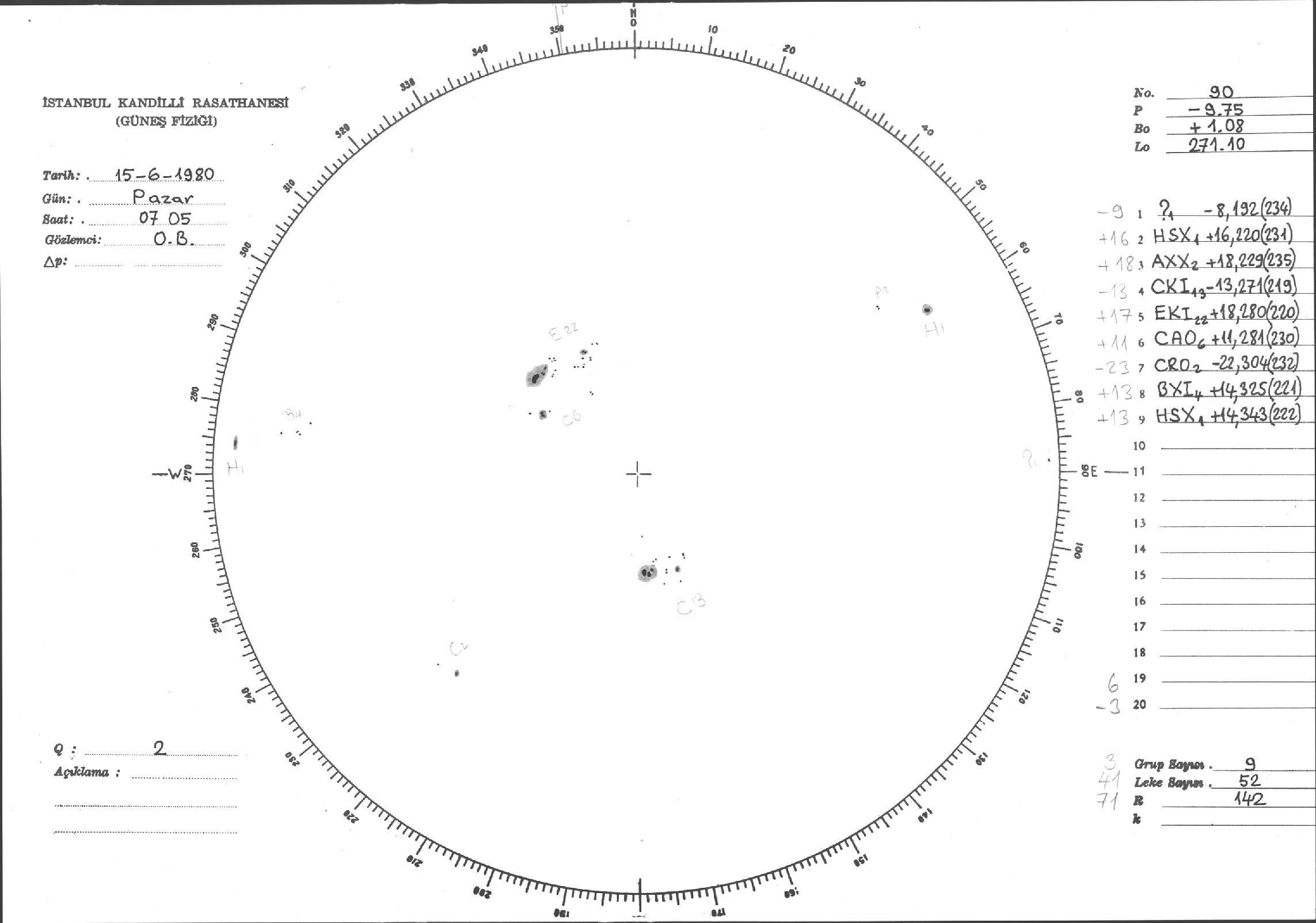 Güneş Lekesi Çizimi - 15.06.1980