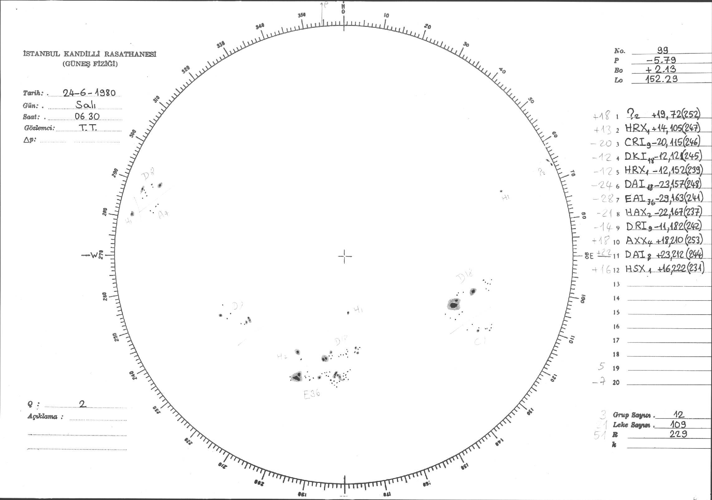 Güneş Lekesi Çizimi - 24.06.1980