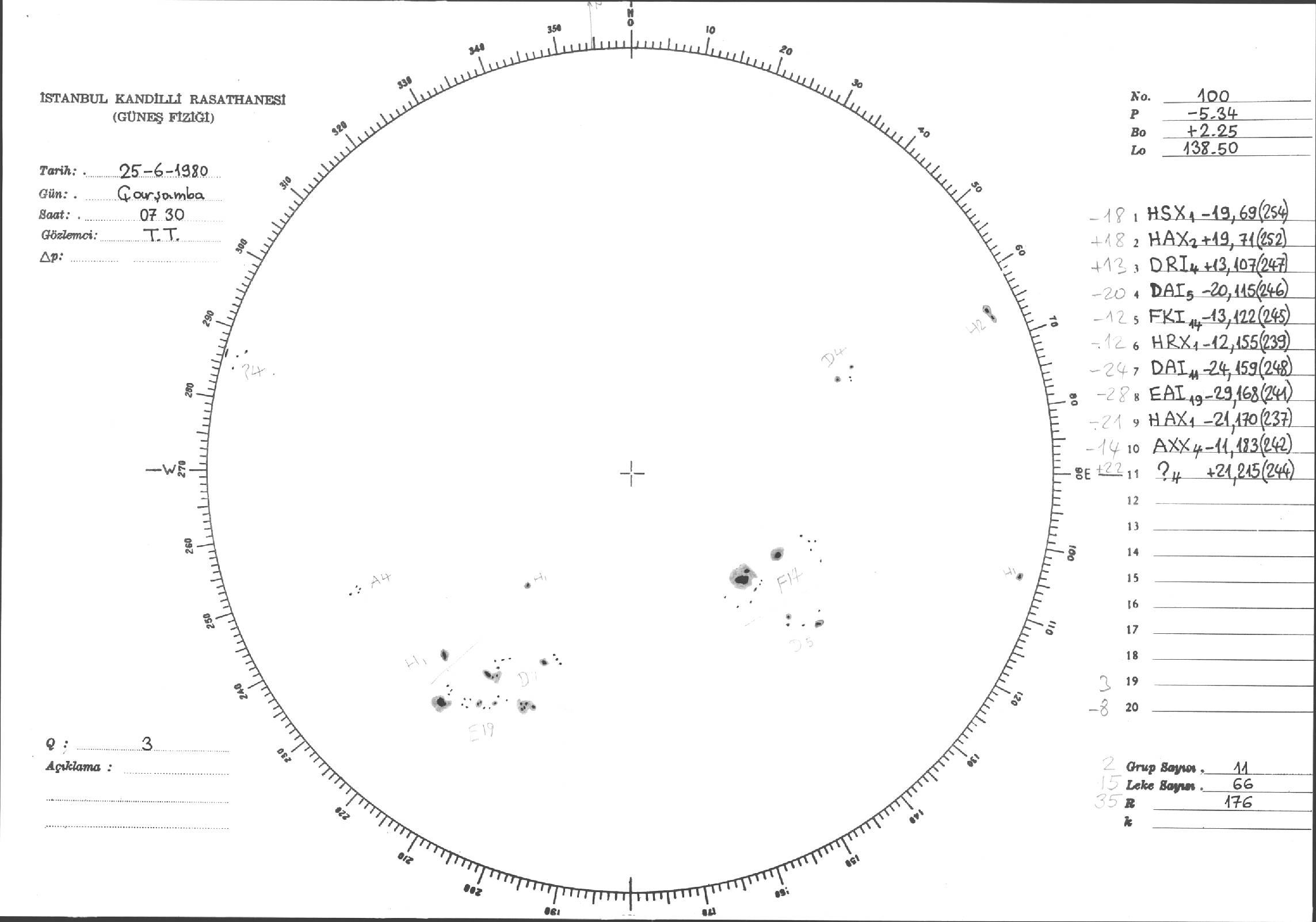 Güneş Lekesi Çizimi - 25.06.1980