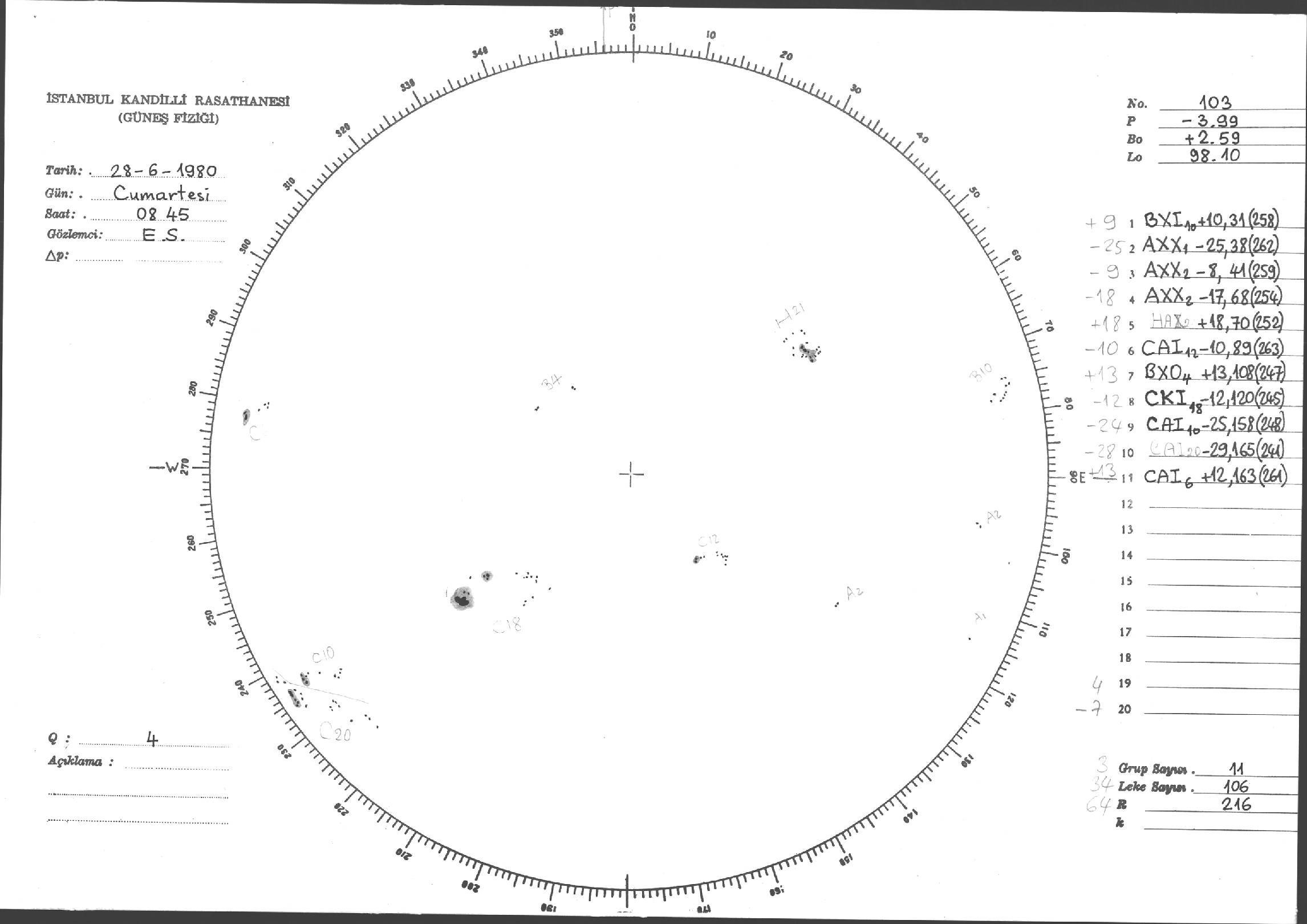 Güneş Lekesi Çizimi - 28.06.1980