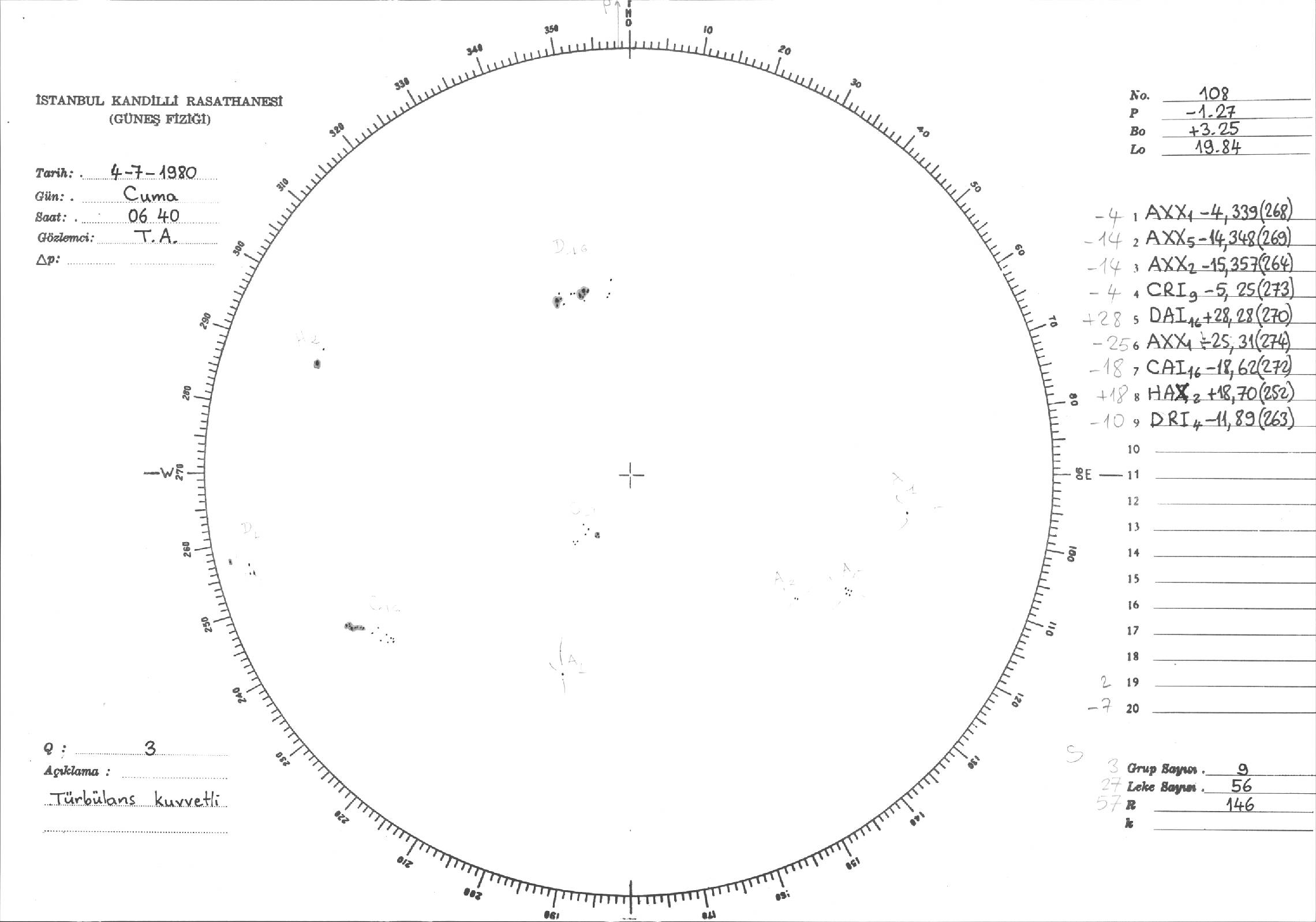 Güneş Lekesi Çizimi - 04.07.1980