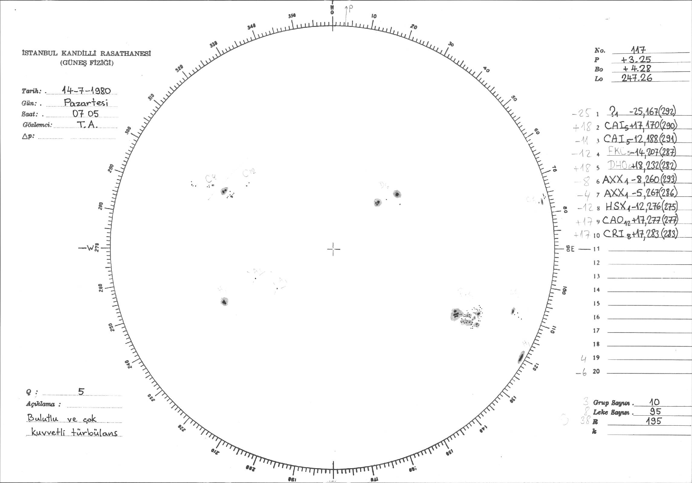 Güneş Lekesi Çizimi - 14.07.1980