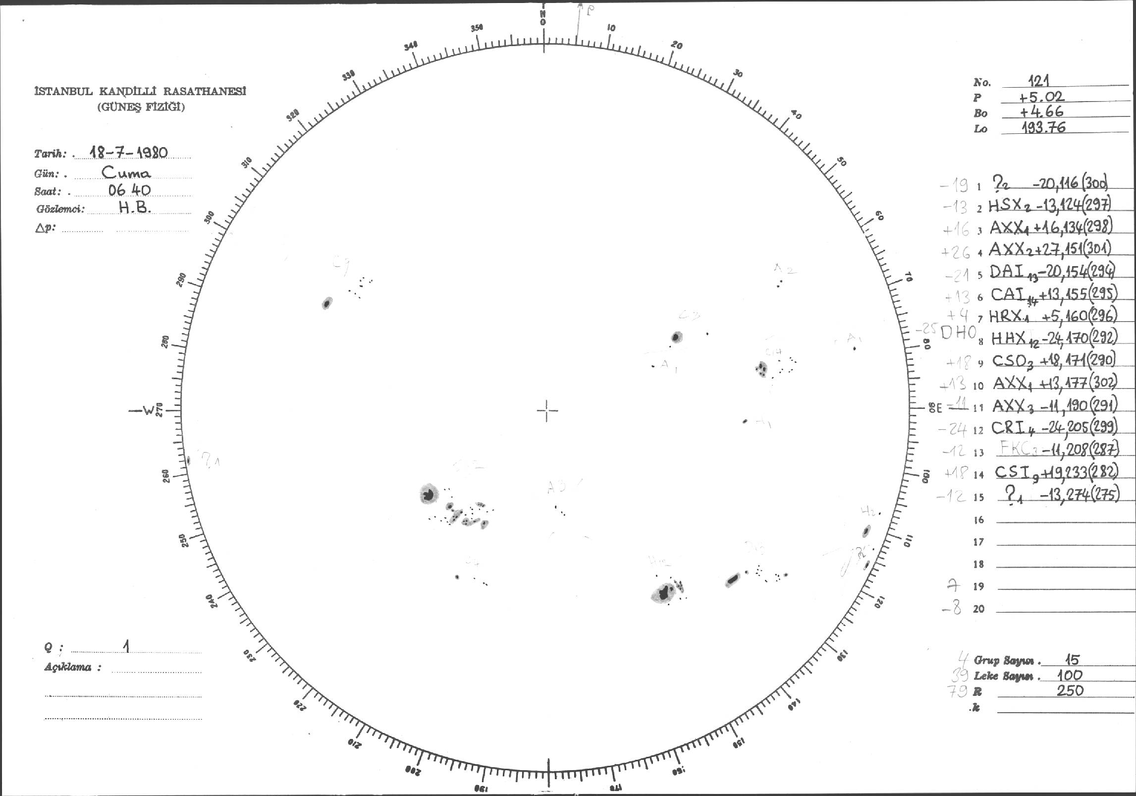 Güneş Lekesi Çizimi - 18.07.1980