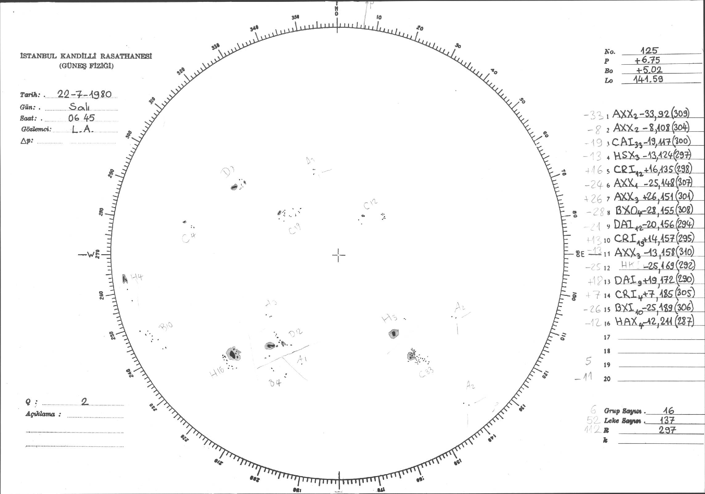 Güneş Lekesi Çizimi - 22.07.1980