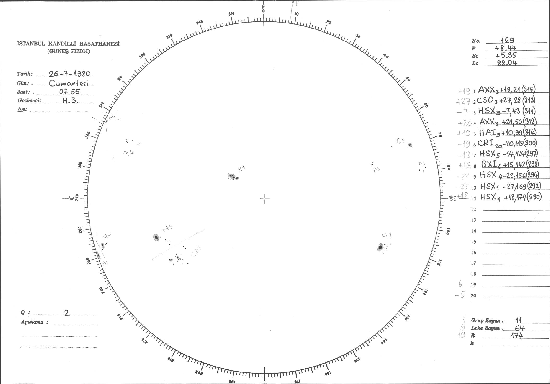 Güneş Lekesi Çizimi - 26.07.1980