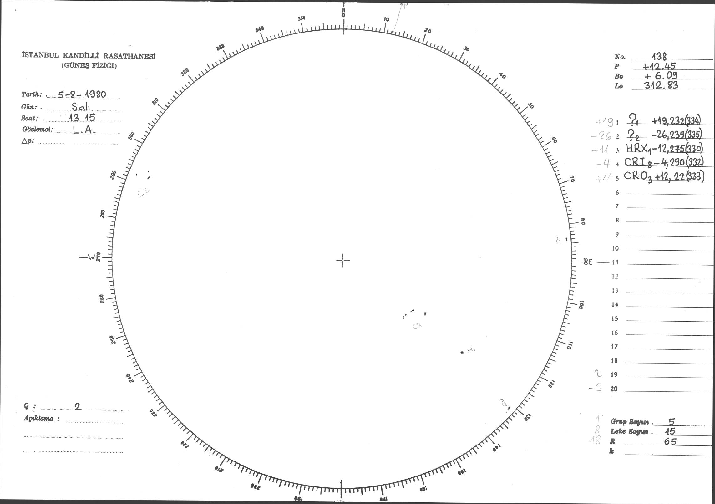 Güneş Lekesi Çizimi - 05.08.1980