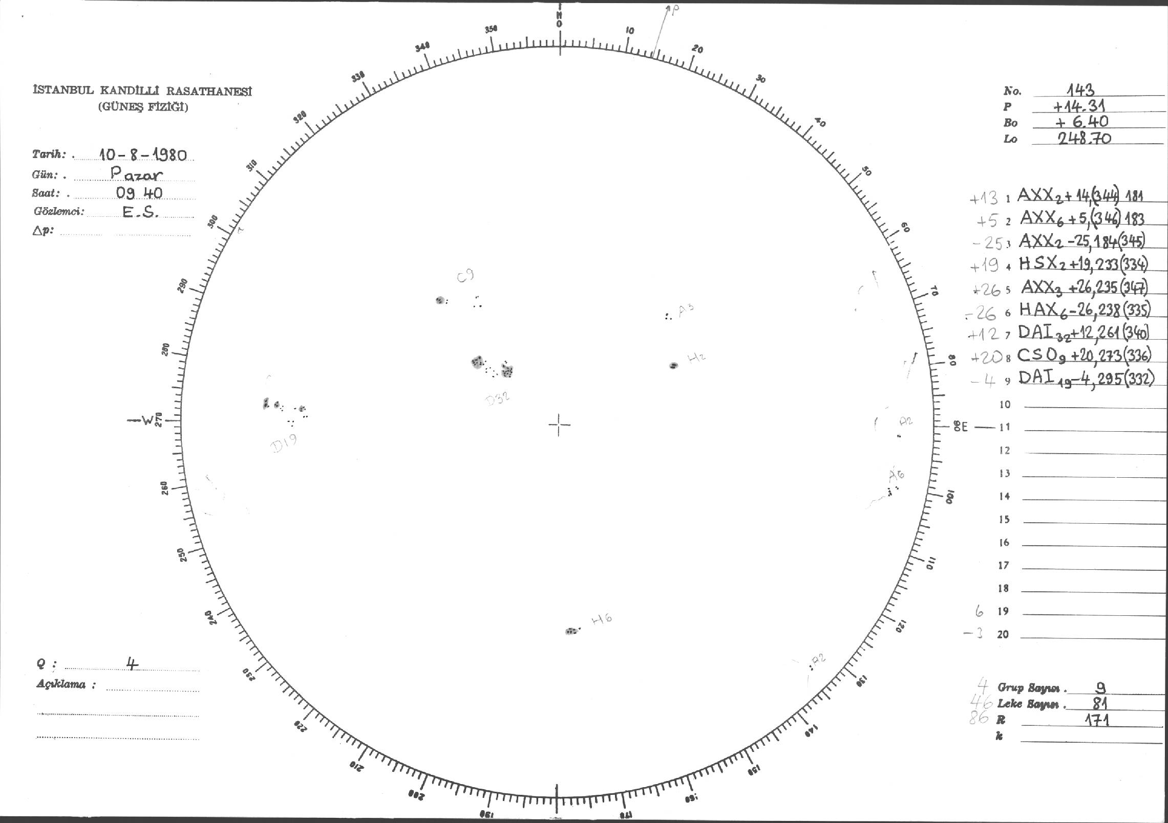 Güneş Lekesi Çizimi - 10.08.1980