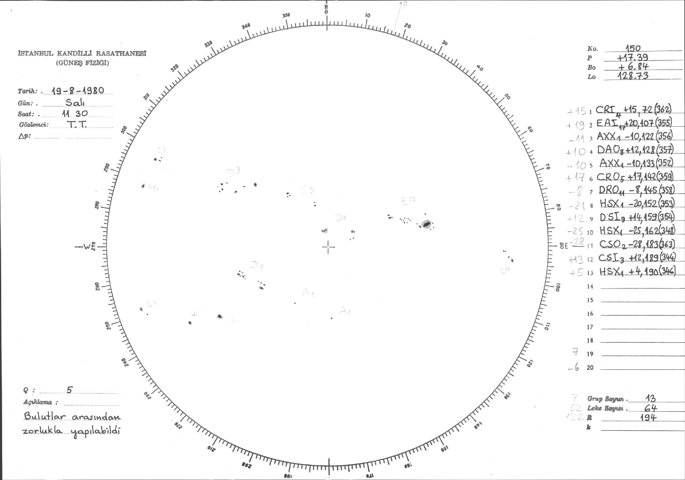 Güneş Lekesi Çizimi - 19.08.1980