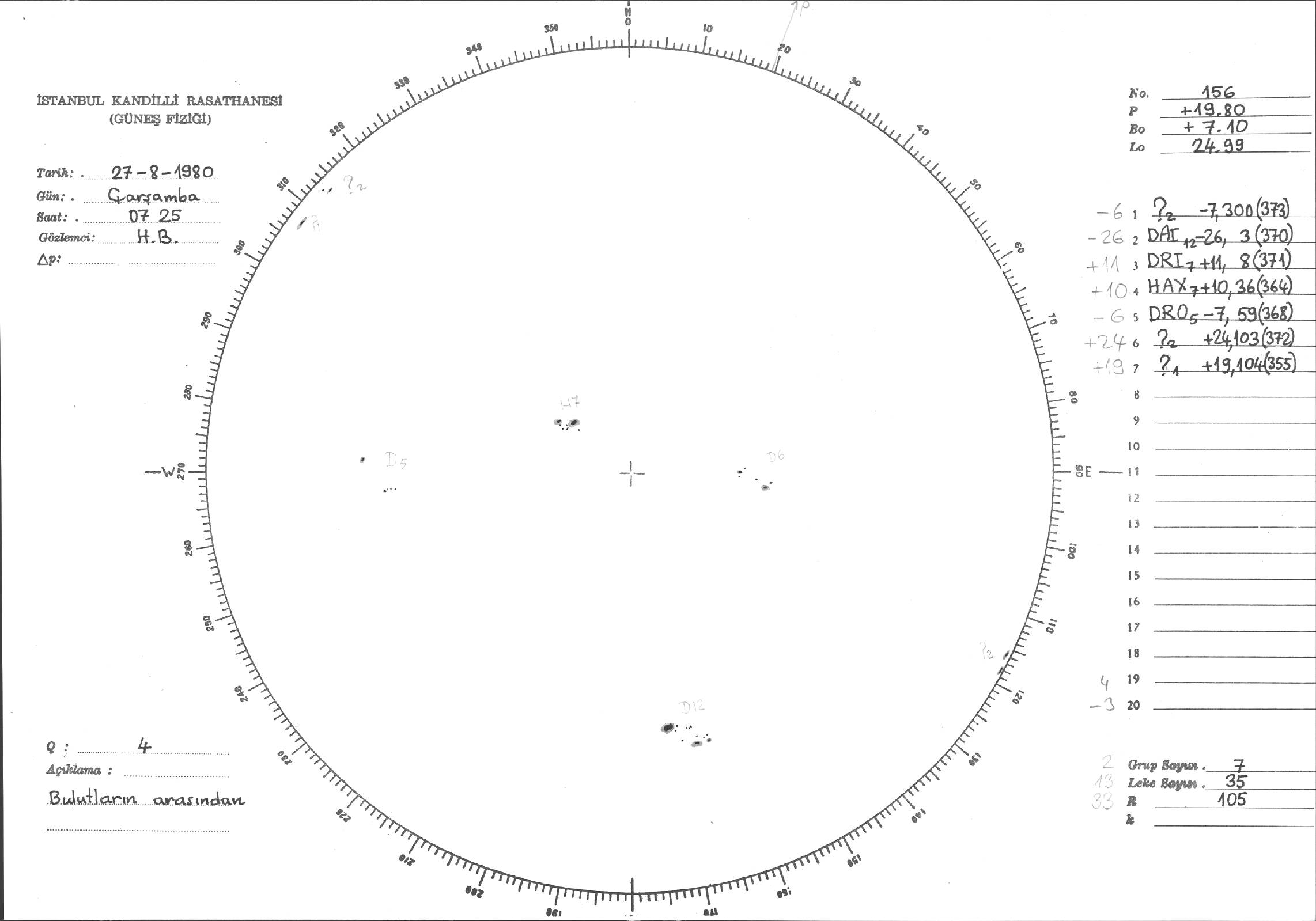 Güneş Lekesi Çizimi - 27.08.1980