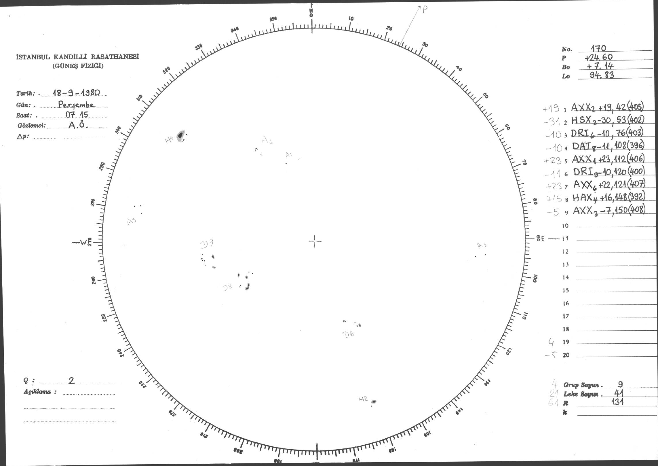 Güneş Lekesi Çizimi - 18.09.1980