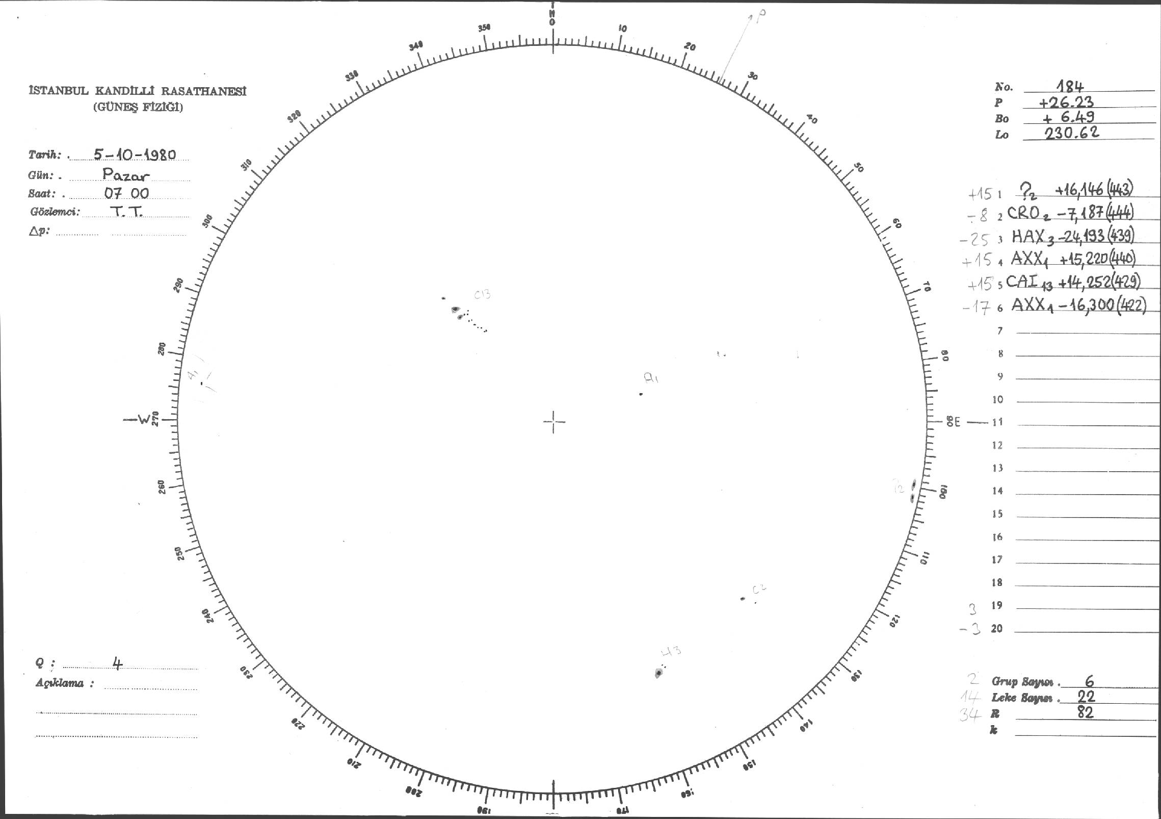 Güneş Lekesi Çizimi - 05.10.1980