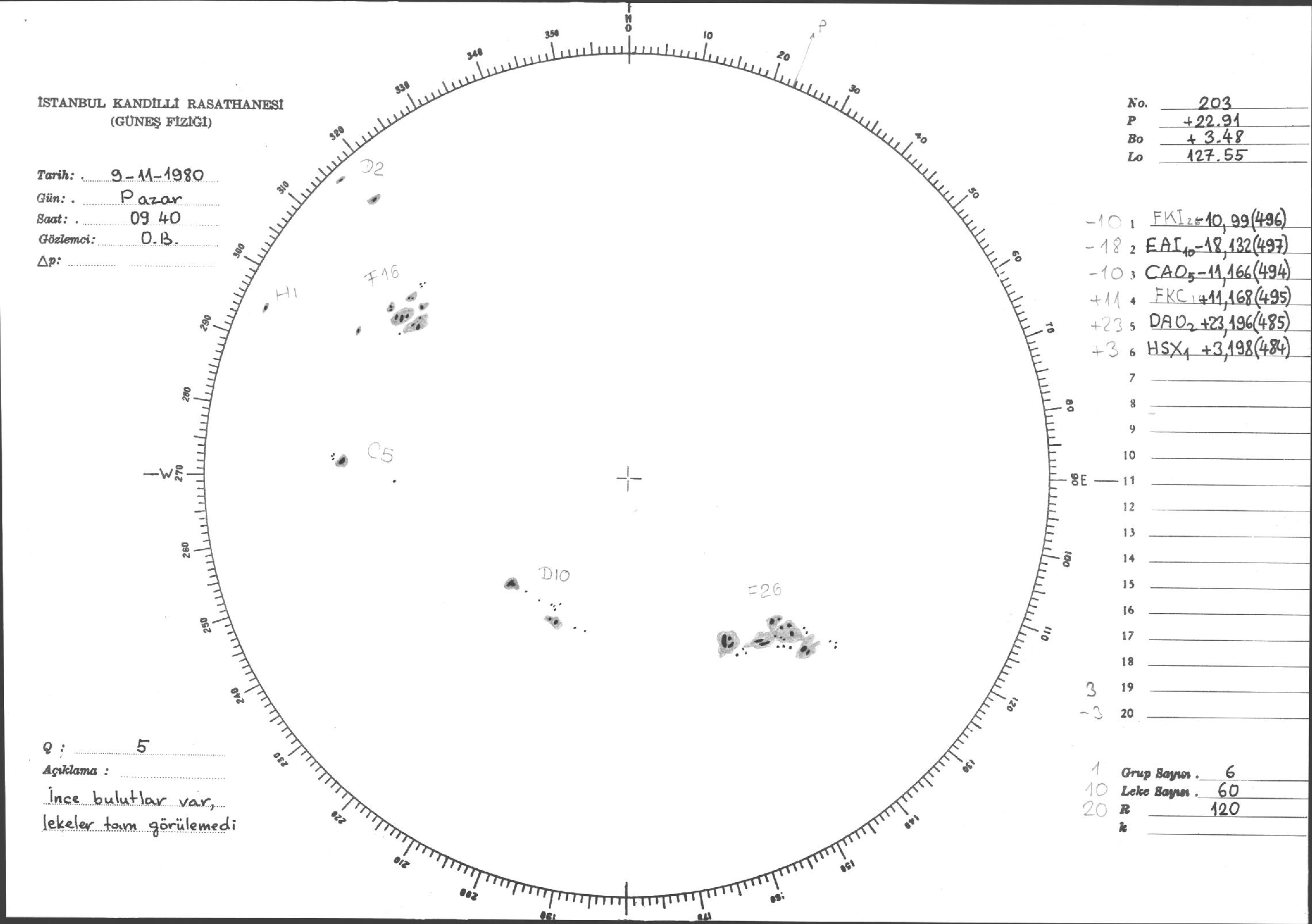 Güneş Lekesi Çizimi - 09.11.1980