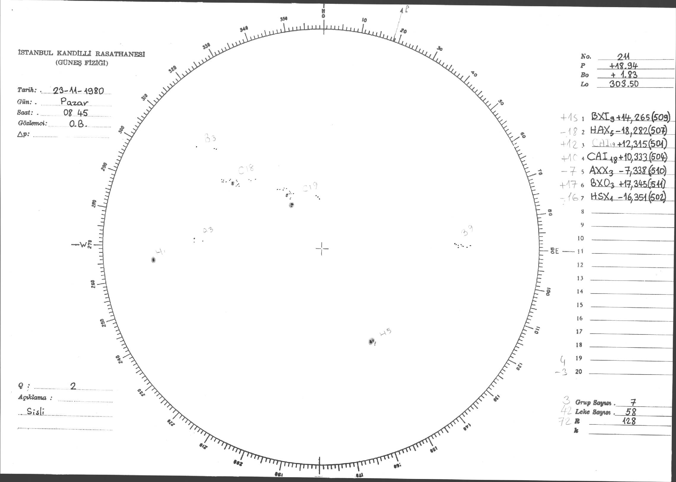Güneş Lekesi Çizimi - 23.11.1980