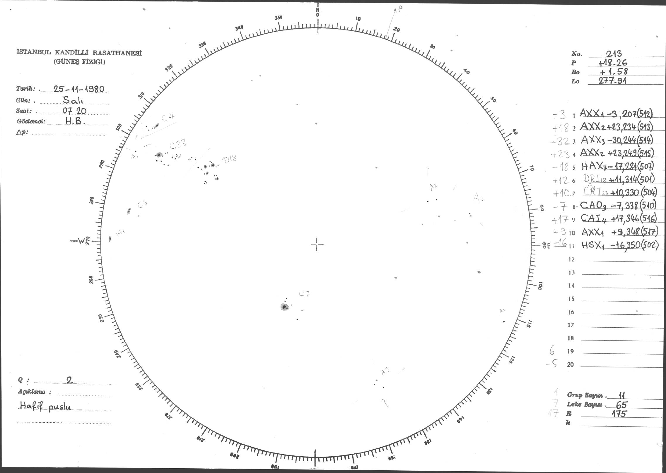 Güneş Lekesi Çizimi - 25.11.1980