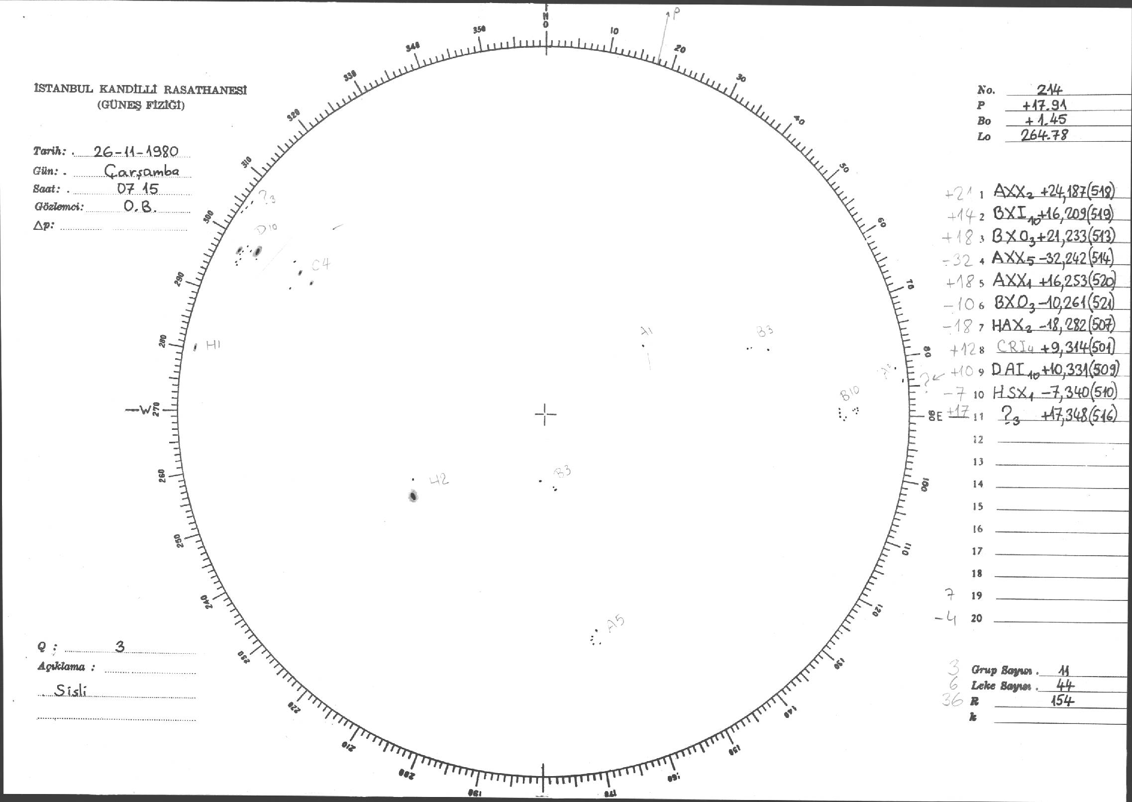 Güneş Lekesi Çizimi - 26.11.1980