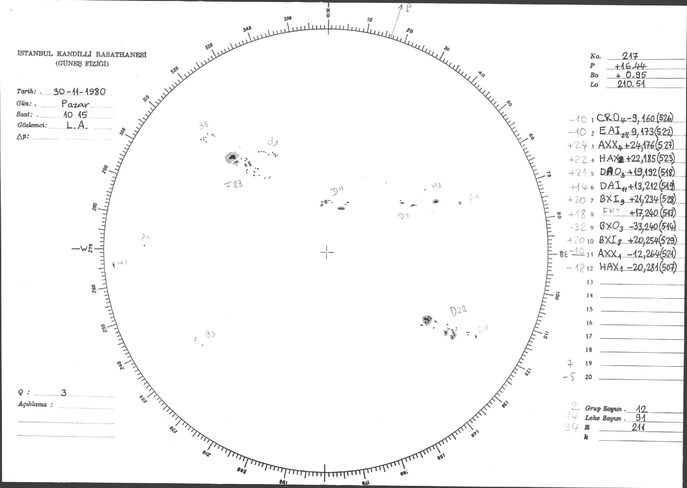 Güneş Lekesi Çizimi - 30.11.1980