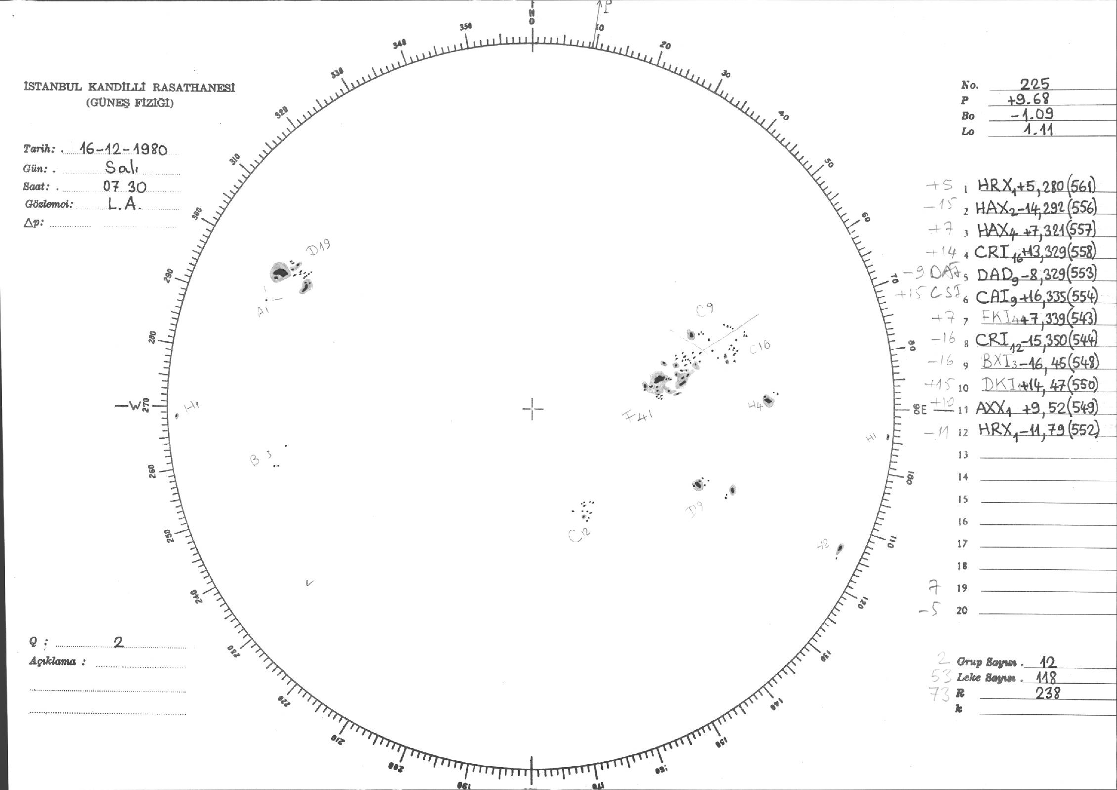 Güneş Lekesi Çizimi - 16.12.1980