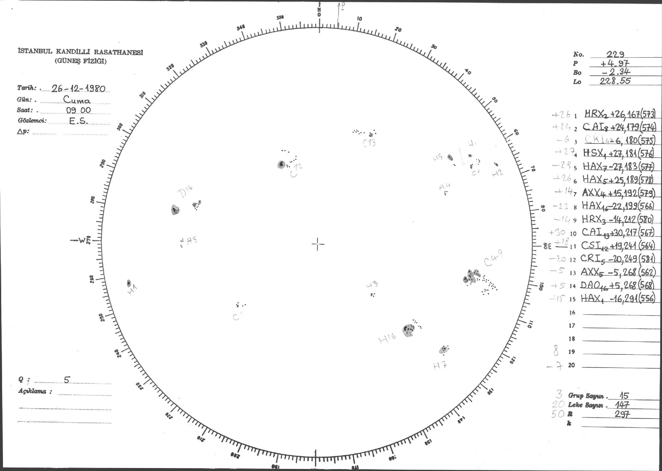 Güneş Lekesi Çizimi - 26.12.1980