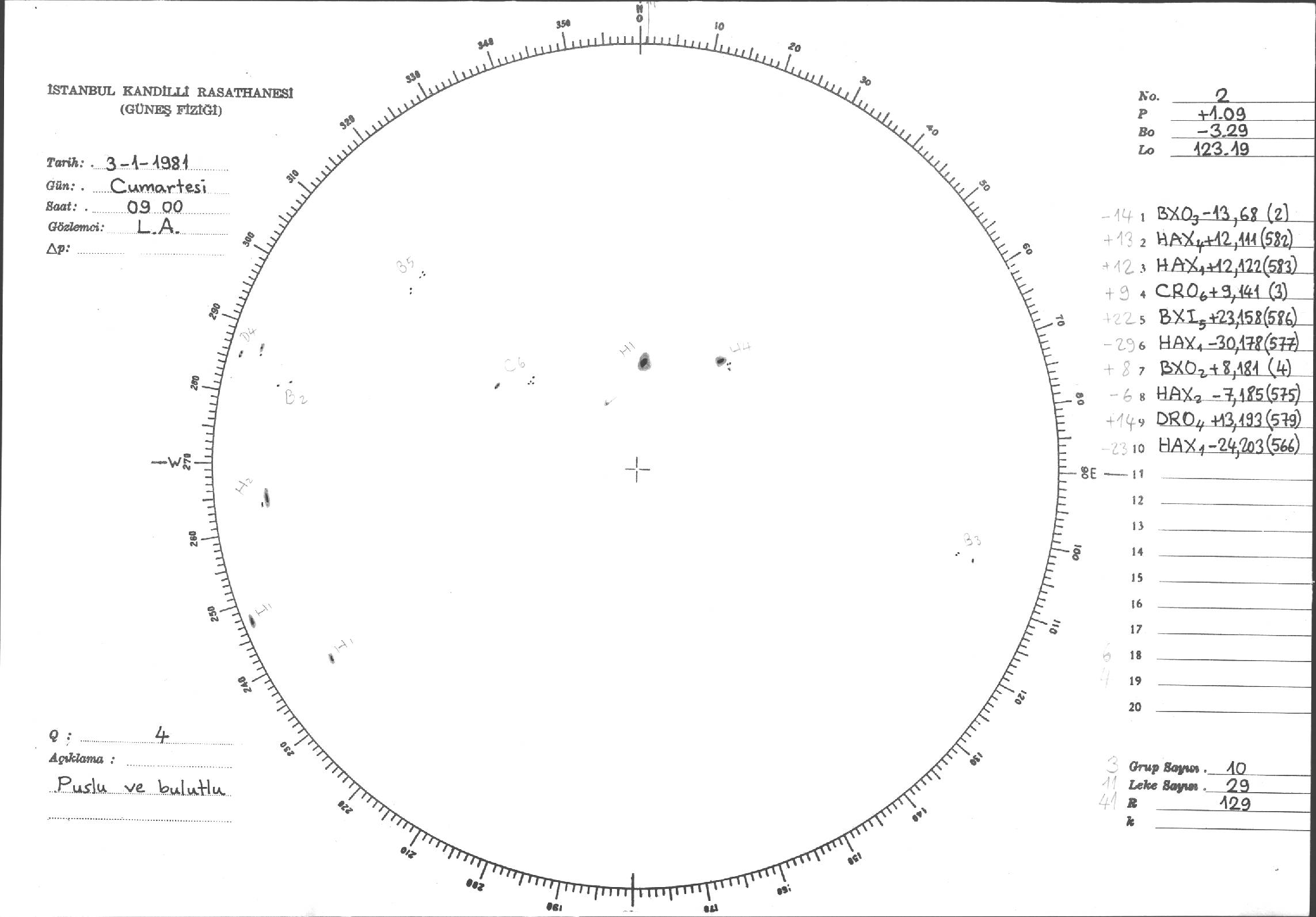 Güneş Lekesi Çizimi - 03.01.1981